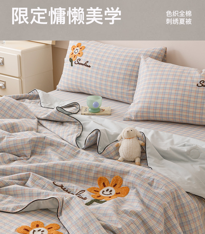 (总)卡姿家纺 2025新款色织水洗棉毛巾绣夏被夏凉被空调被,夏被粉小格,夏被黑白条纹,夏被红蓝小格,夏被紫小格