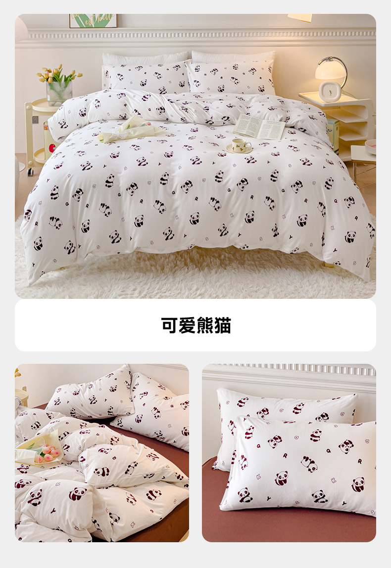 当前位置: 91家纺网 > 商品网购 > 床品套件 > 四件套 > 伊嫚家居 38_新款日式新品全棉针织棉A类活性印花四件套天竺棉小碎花复古亲肤被罩床笠款套件 可爱熊猫