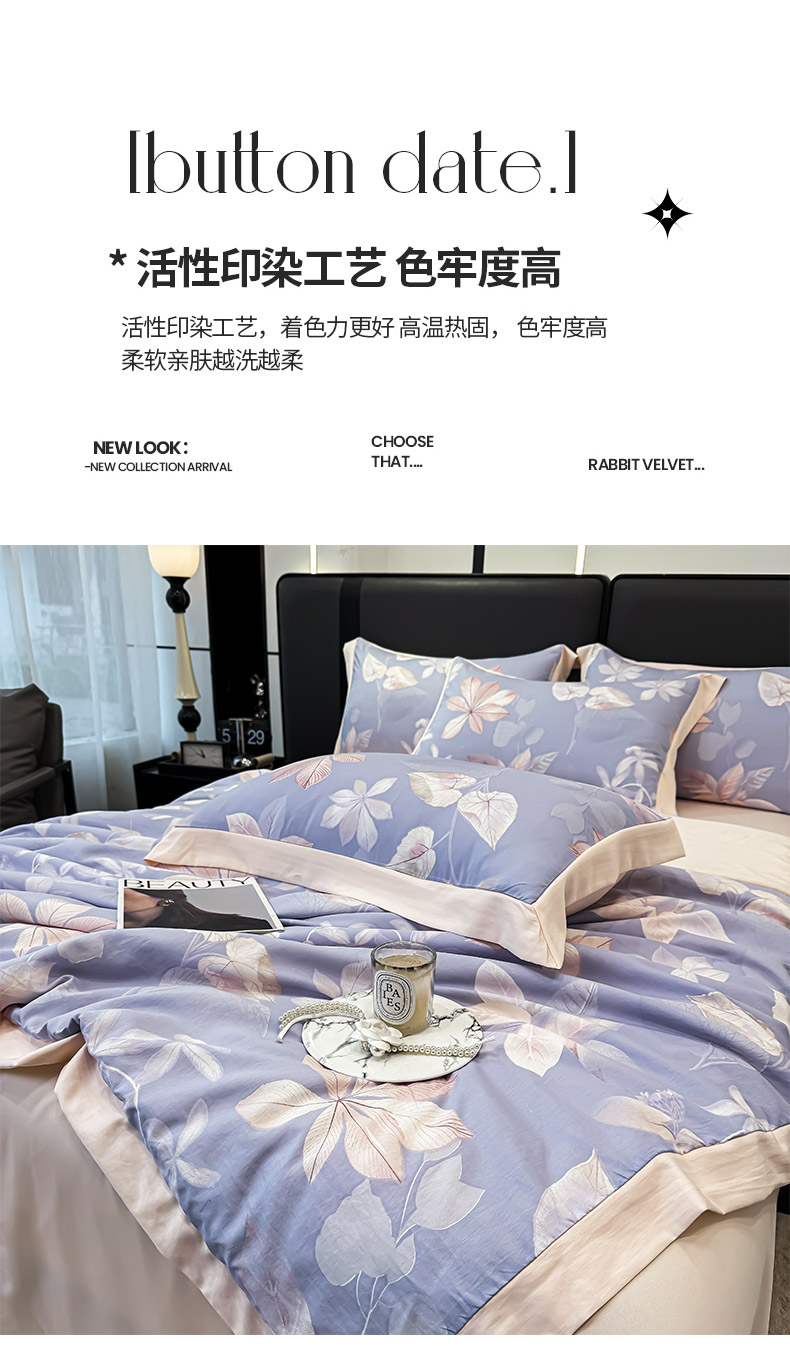 (总)合欢(原天一阁) 2025新款100%全棉加厚磨毛印花四件套,春雨藤-紫,丛林深处-灰,丛林深处-蓝,淡颜-橙,淡颜-粉,花艺浓-紫,涟琦-黄,沐棉-粉,秋风落叶-香槟,维希格调-豆沙