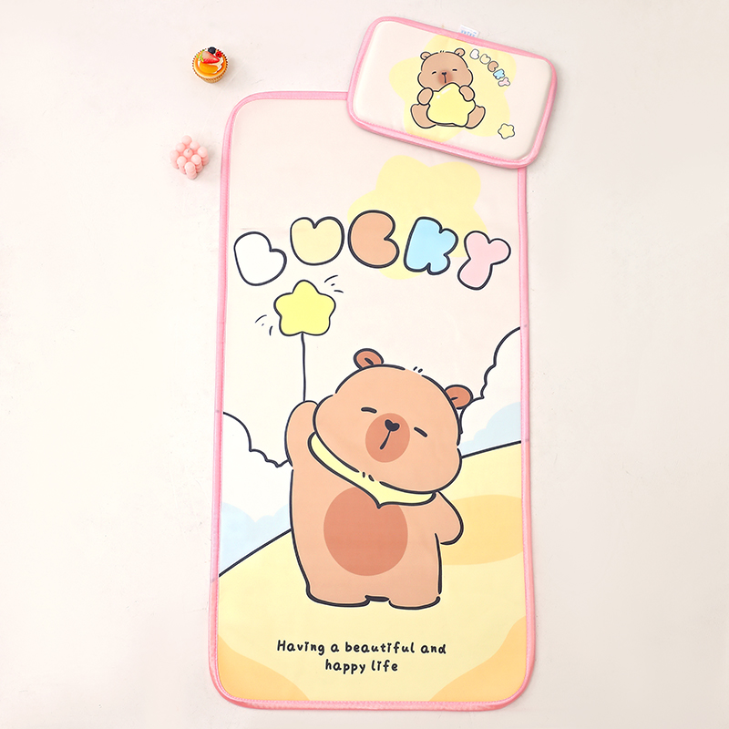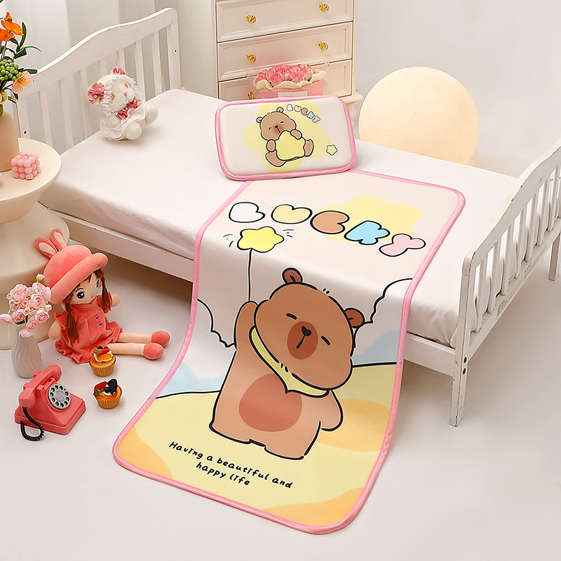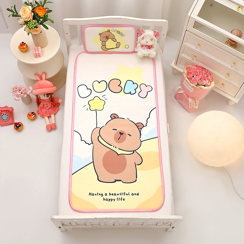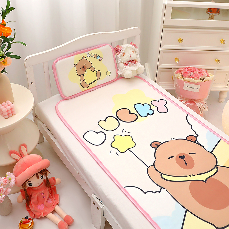 (总)八零年代 2025新品云柔牛奶丝儿童凉席套件,爱心小兔,凹凸曼,粉红马,可爱女孩,恐龙王子,快乐卡皮,蓝色小狗,泡泡女孩,赛 罗,条纹卡皮,挖掘机,云朵小兔,星星卡皮巴拉,月亮卡皮巴拉