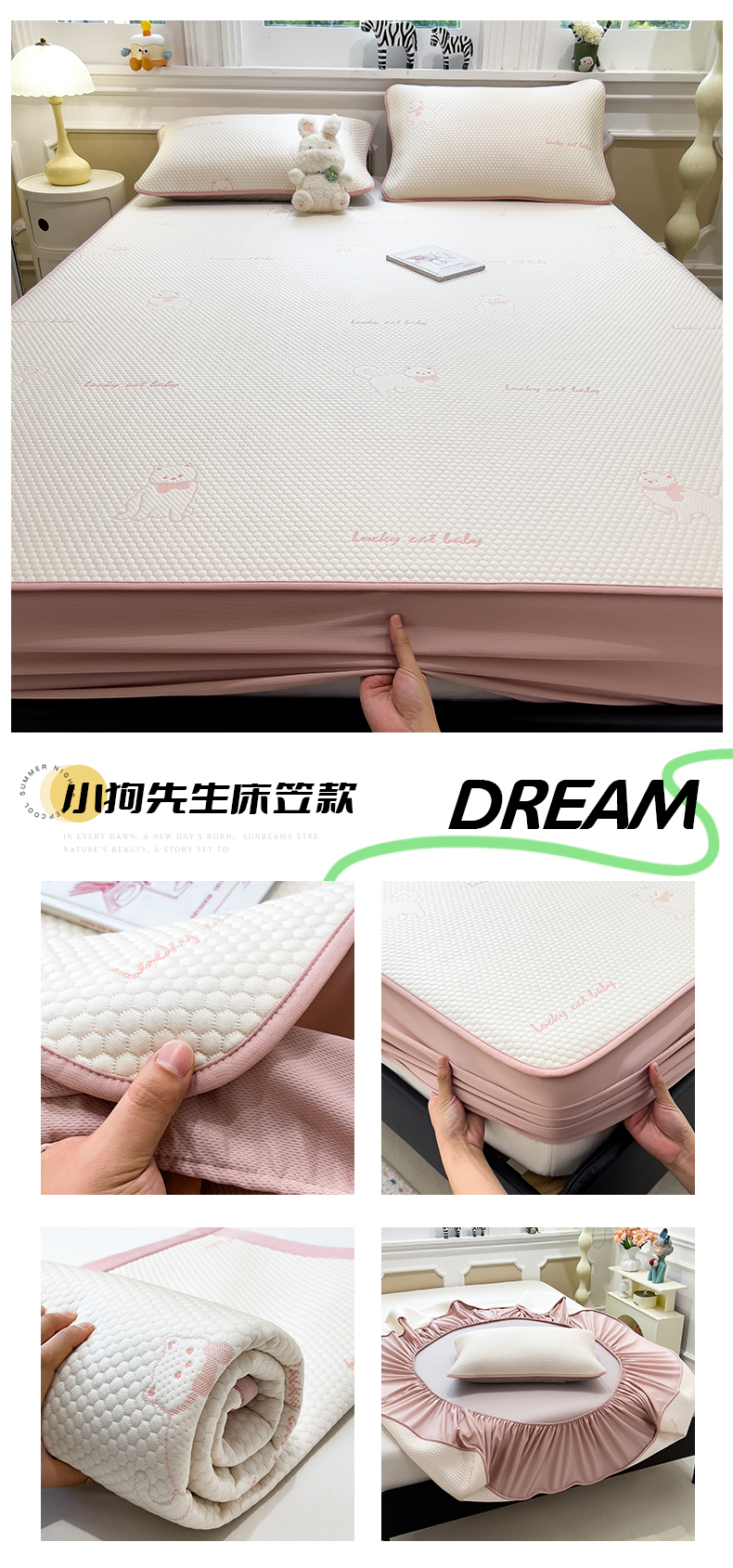 商品名称:倾慕家纺 2025年新款PE豆豆提花凉席卡通系列-床笠款 小狗先生