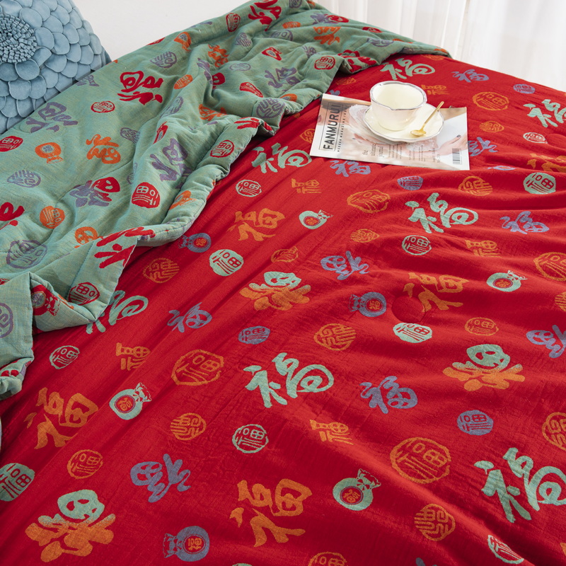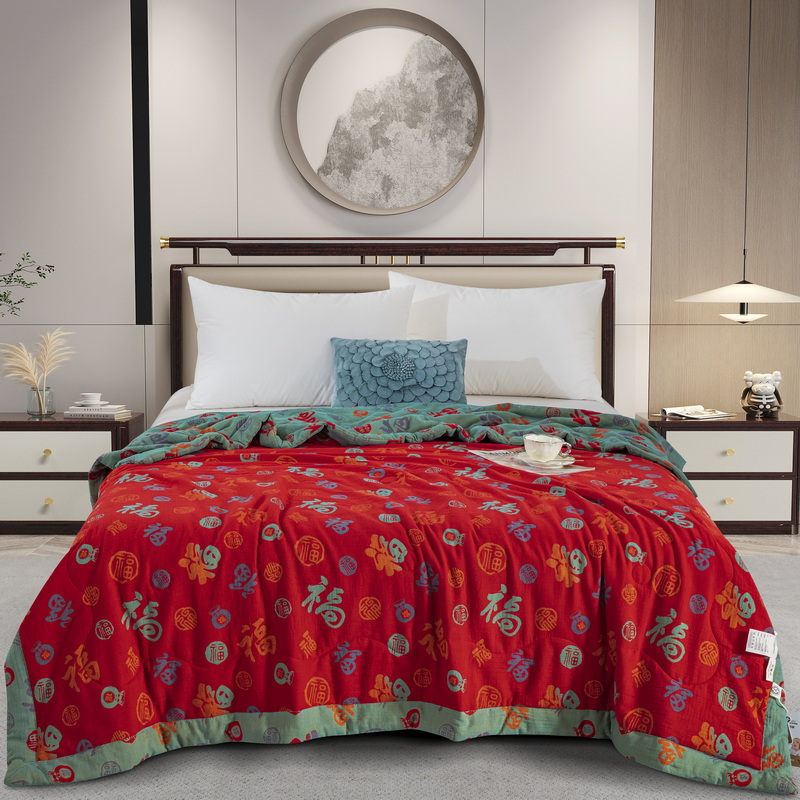 (总)鲁爱家纺供货 2025新款全棉双层纱提花夏被