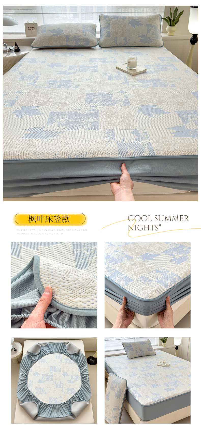 商品名称:2025年新款PE豆豆提花凉席花卉系列-床笠款 枫叶