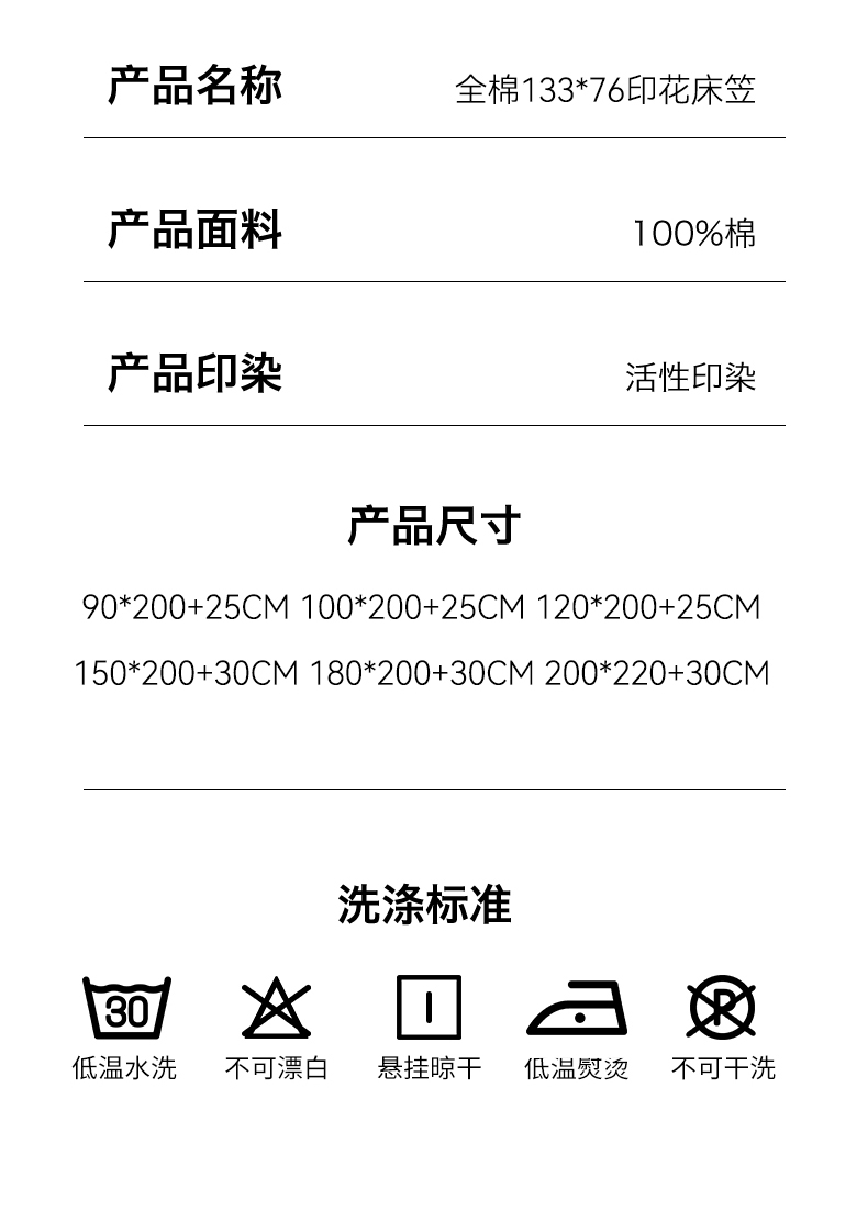 商品名称:(总)宝齐莱家纺 2025新款13376全棉纯棉活性印花床笠单品单床笠床笠单件