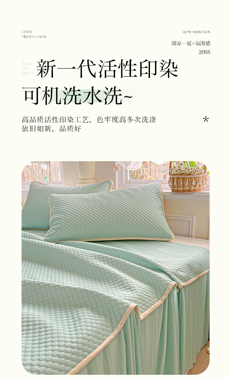 (总)格真 2023新款A类云锦棉大豆棉床裙,豆沙,满天星紫,米白,牛油果绿,樱花粉,芋泥灰