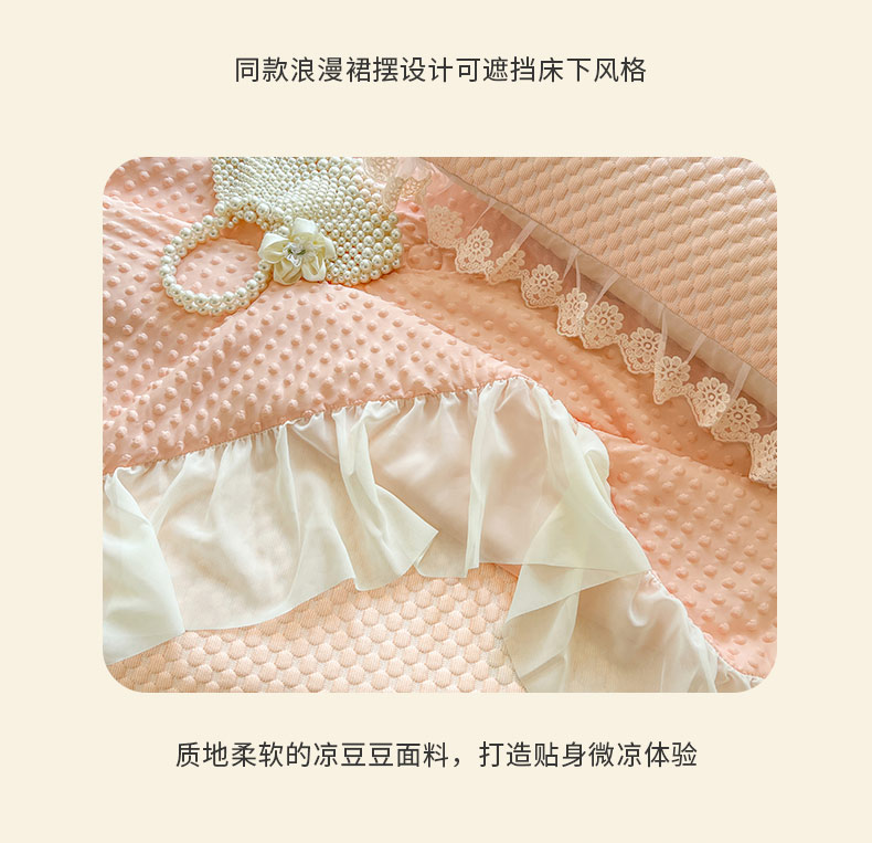 商品名称:恋尚 2025新款立体裸睡凉感冰豆豆席豆豆夏被夏凉被空调被四件套-伊米(控价265起) 伊米-清新玉
