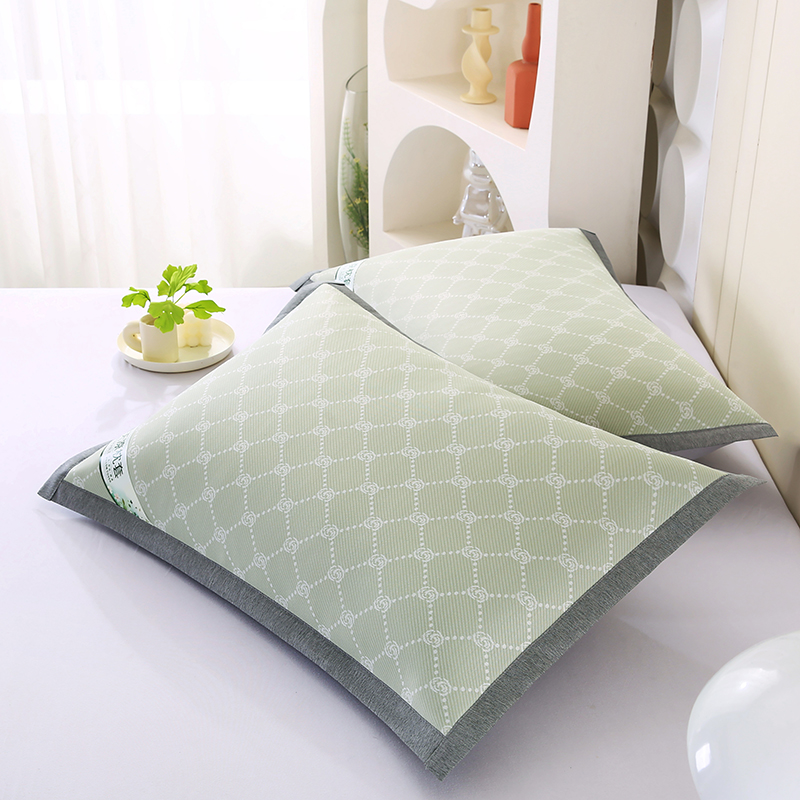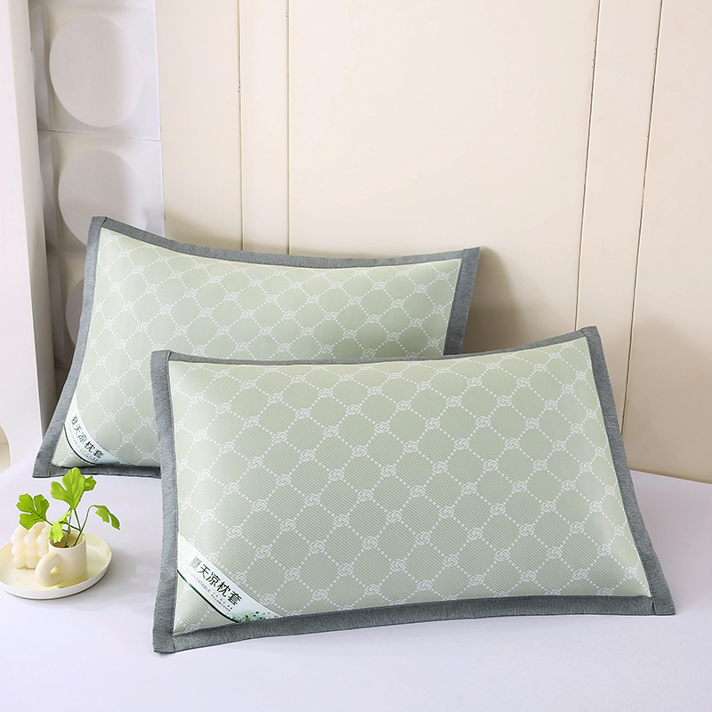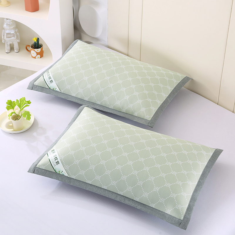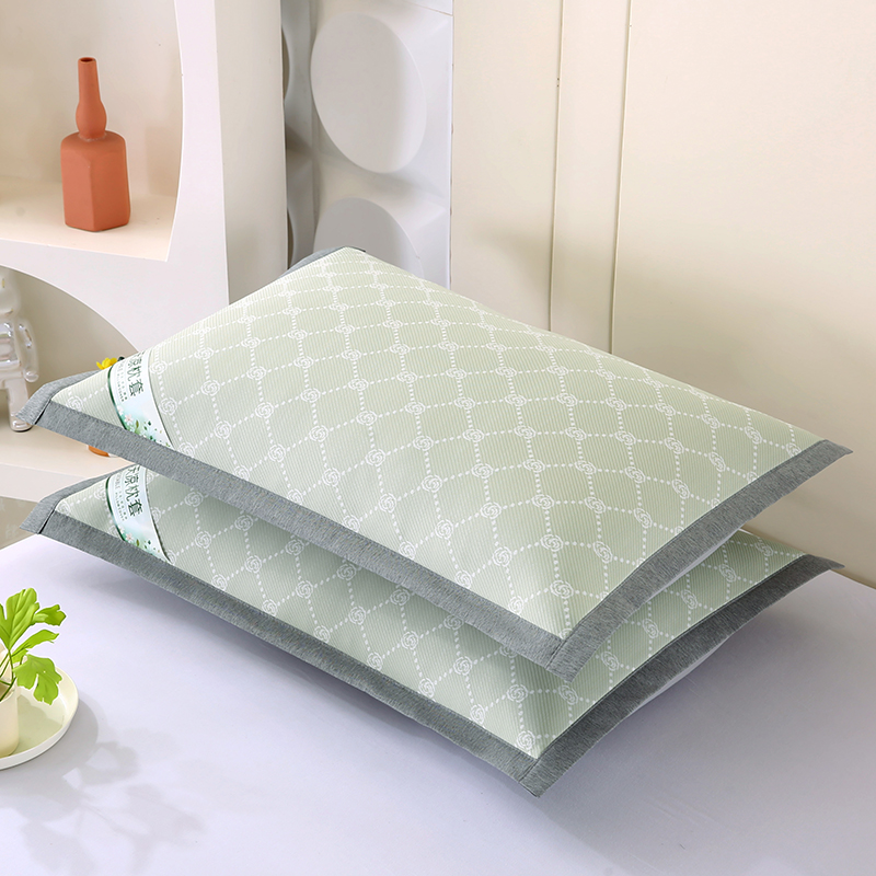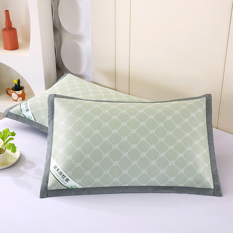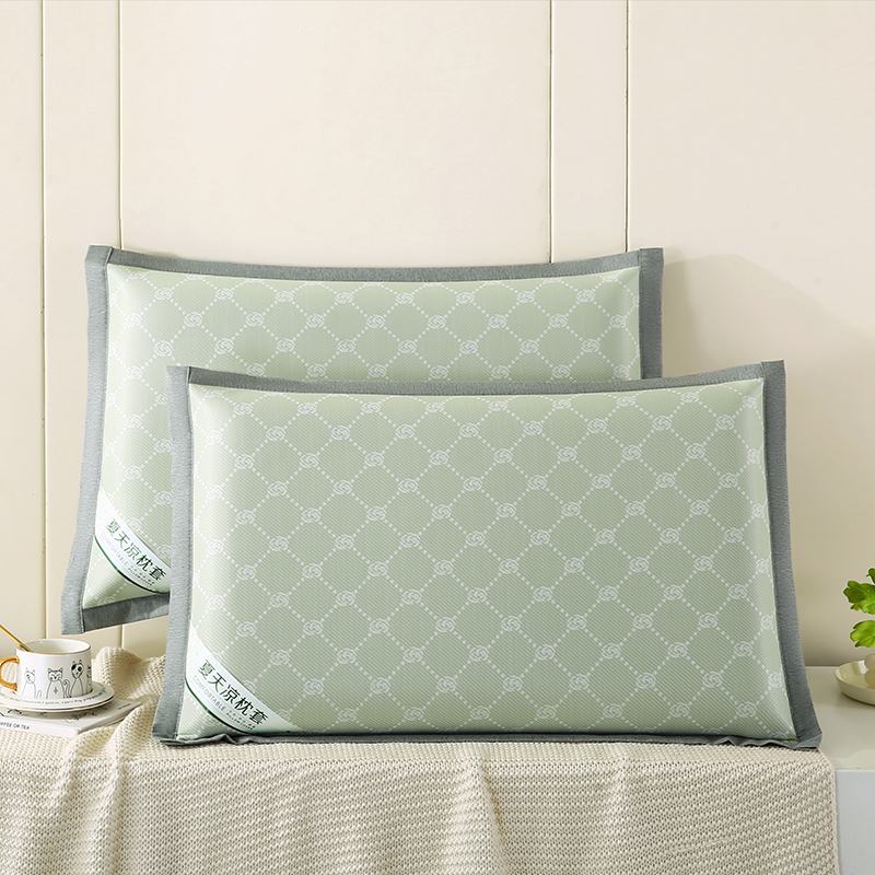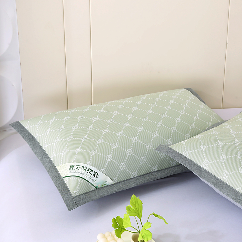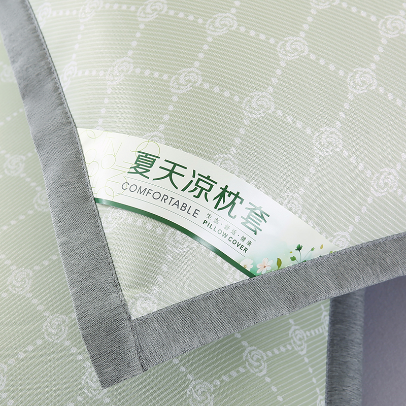 2025新款PE小玫瑰提花夏凉冰丝枕套 绿色