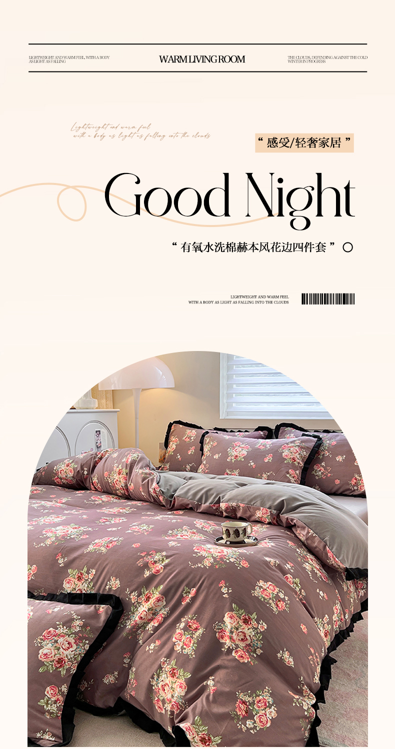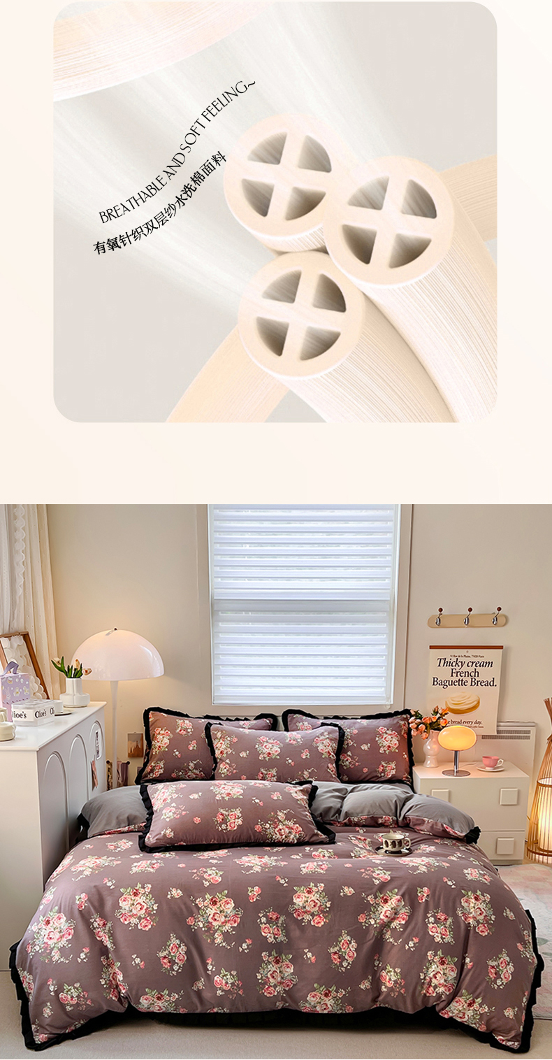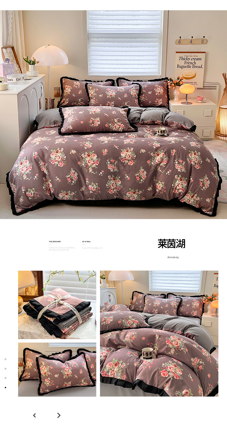 当前位置: 91家纺网 > 商品网购 > 床品套件 > 四件套 > 水洗棉四件套 > 曼璐家纺 2025新款有氧水洗棉赫本风法式黑色花边四件套 莱茵湖