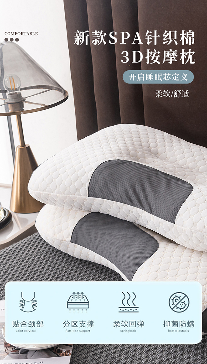 商品名称:木子晗 2025新款spa针织棉3D按摩枕助睡眠枕头枕芯 3d按摩枕中枕