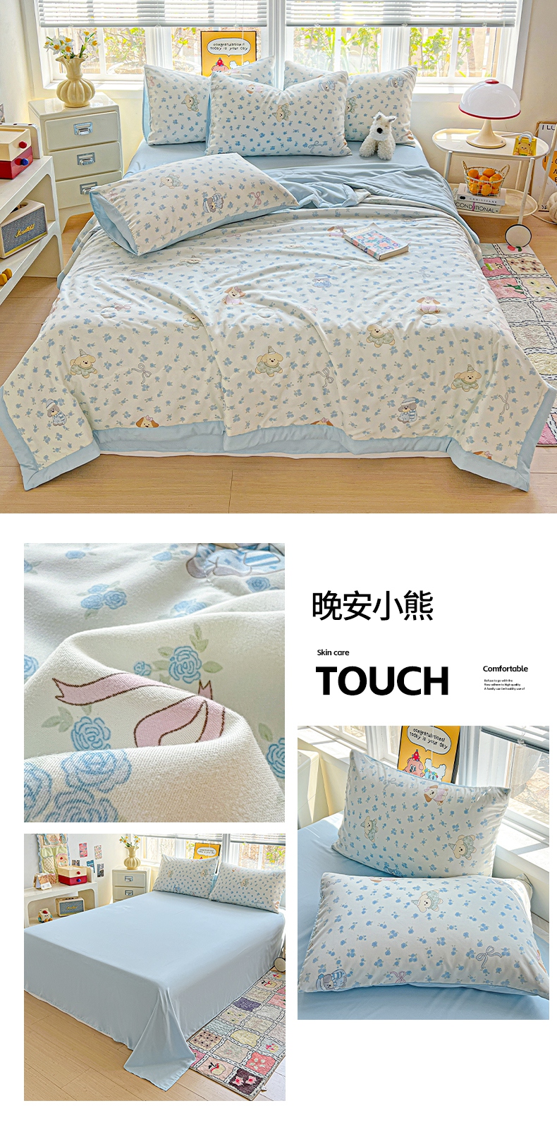 (总)妖妖家纺 2023新款超柔水洗双层纱三件套宿舍床,风铃花,后花园,花儿与兔,及风情,尽相思,静谧,可爱棕熊,兰花草,柿柿如意,涂鸦爱心,夏日樱桃,小熊花园,月季花香