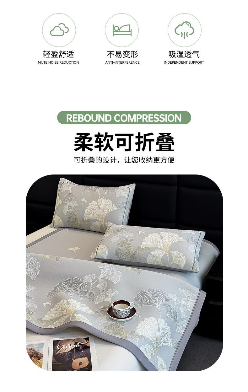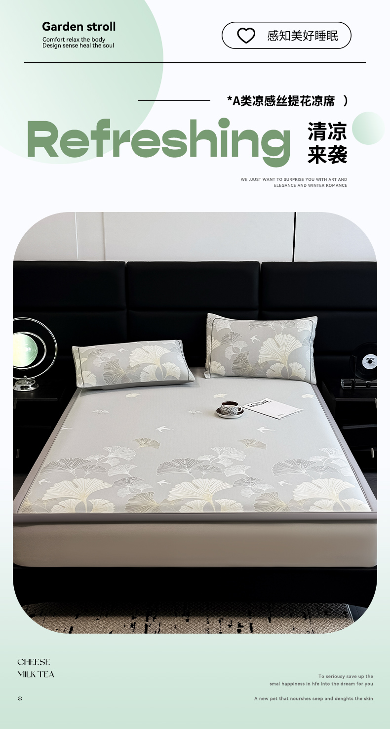 商品名称:全季家居 2025新款5A乙纶全PE花卉轻奢提花凉感软凉席席子 漫香银杏 床席
