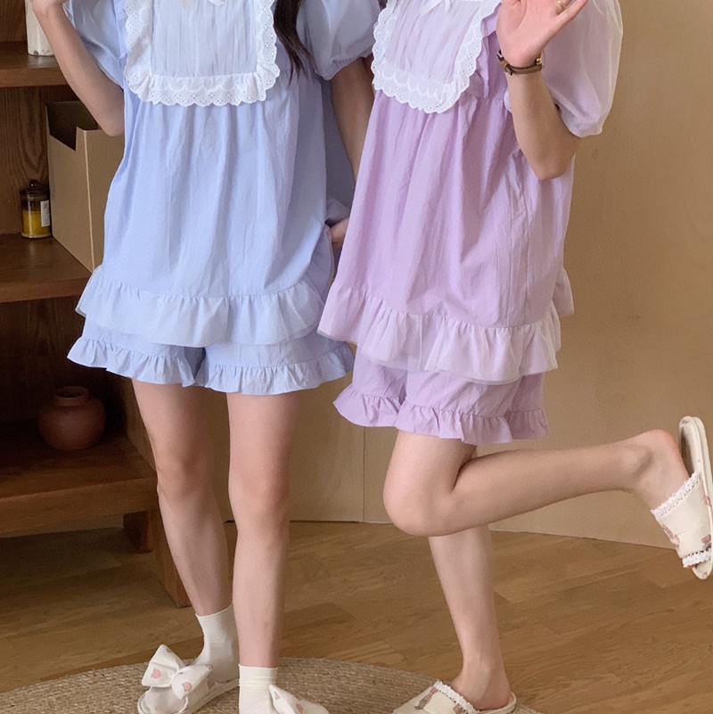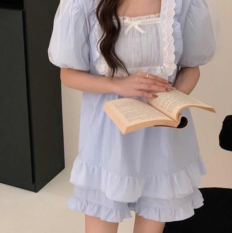 (总)妍景家居生活馆2025新款韩系蕾丝花边方领套装-82967