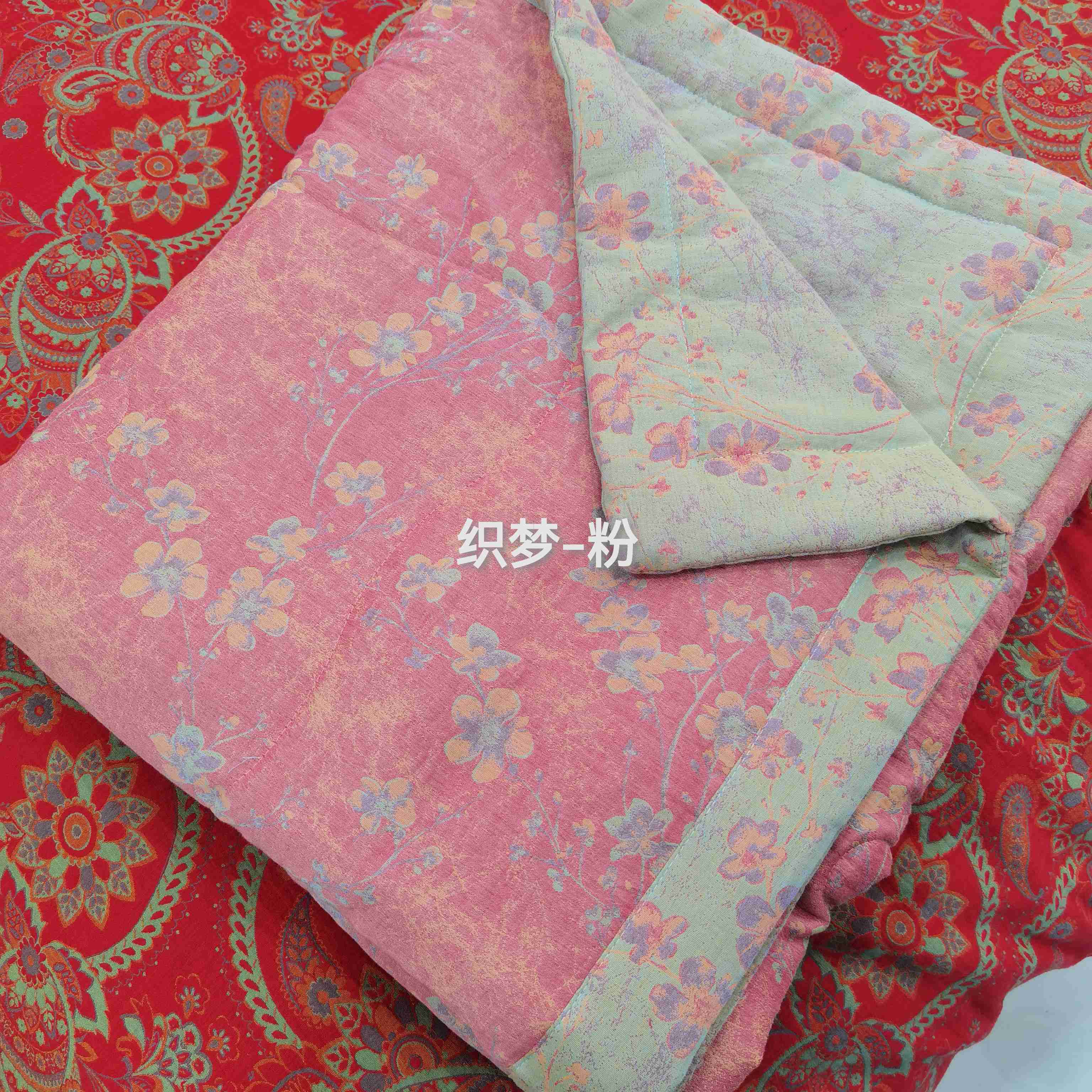 鲁爱家纺供货 2025新款全棉双层纱提花夏被 织梦-粉
