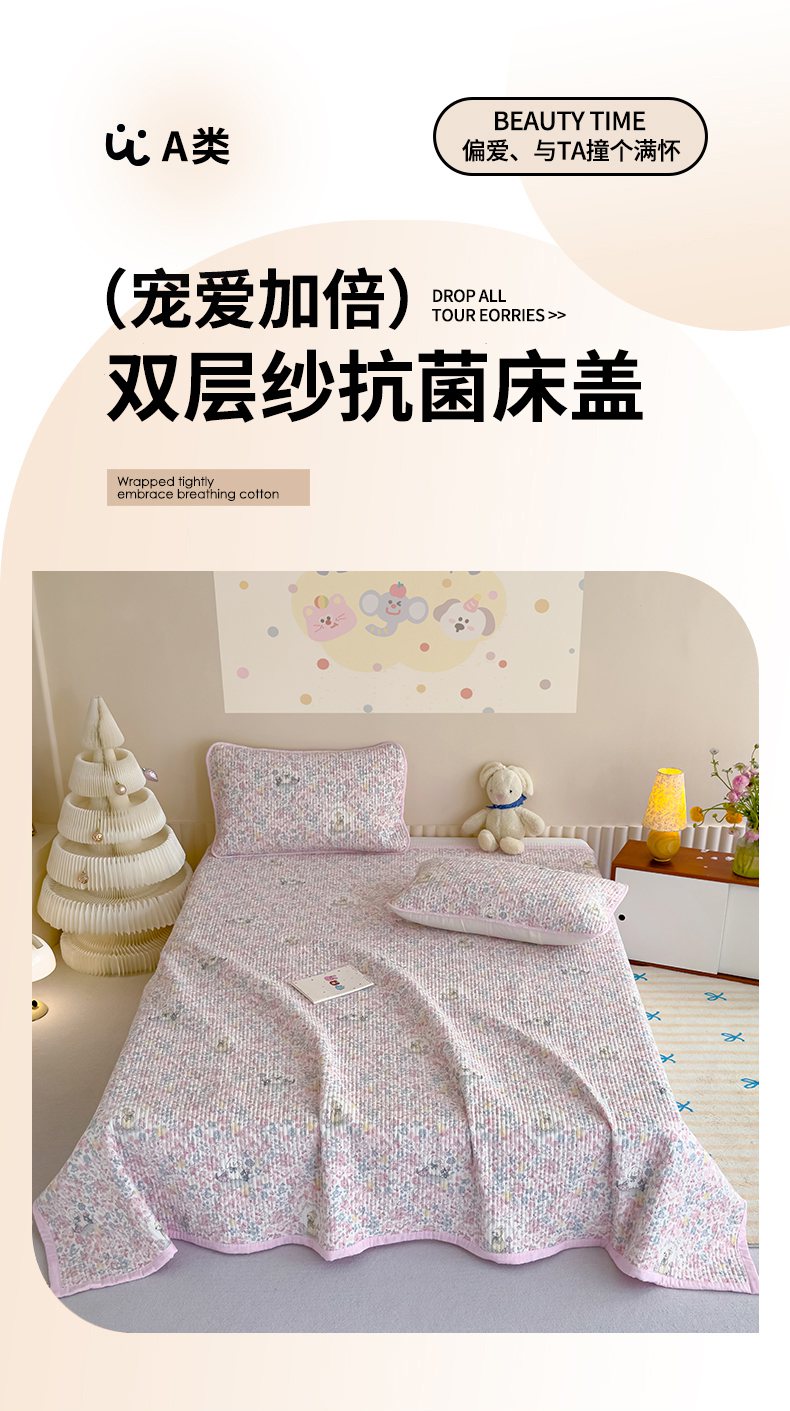 贝扬思家纺 2025新款双层纱抗菌床盖三件套 呆呆kt