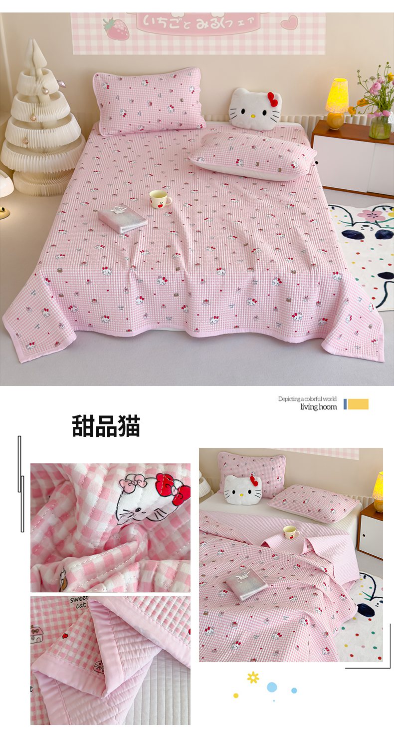 (总)贝扬思家纺 2025新款三丽鸥简约条纹夏被夏凉被空调被套件系列,奶油条kt粉粉,奶油条kt粉黄,奶油条kt黄黄,奶油条kt蓝蓝,奶油条kt紫紫