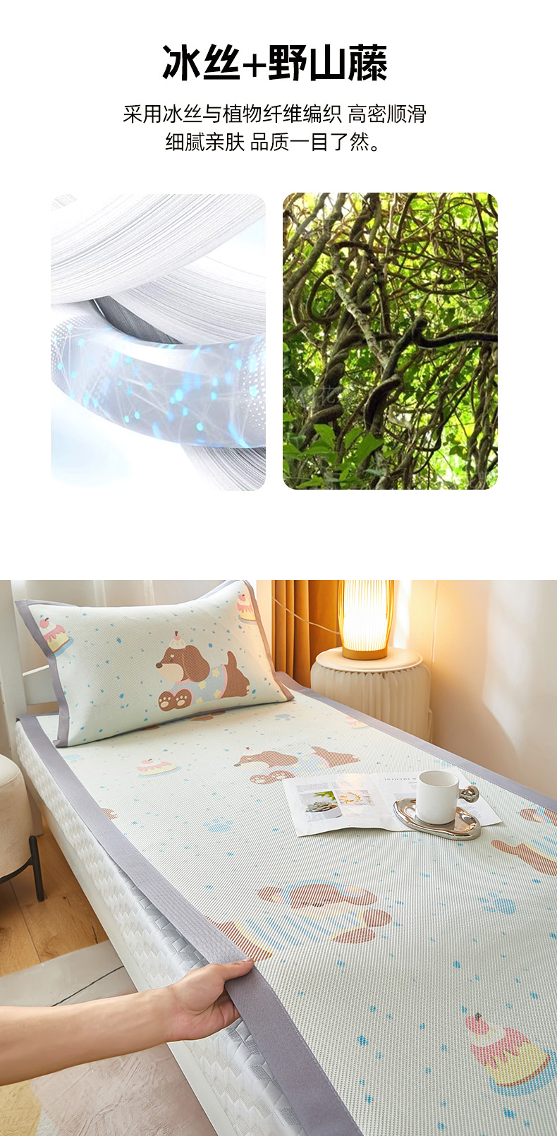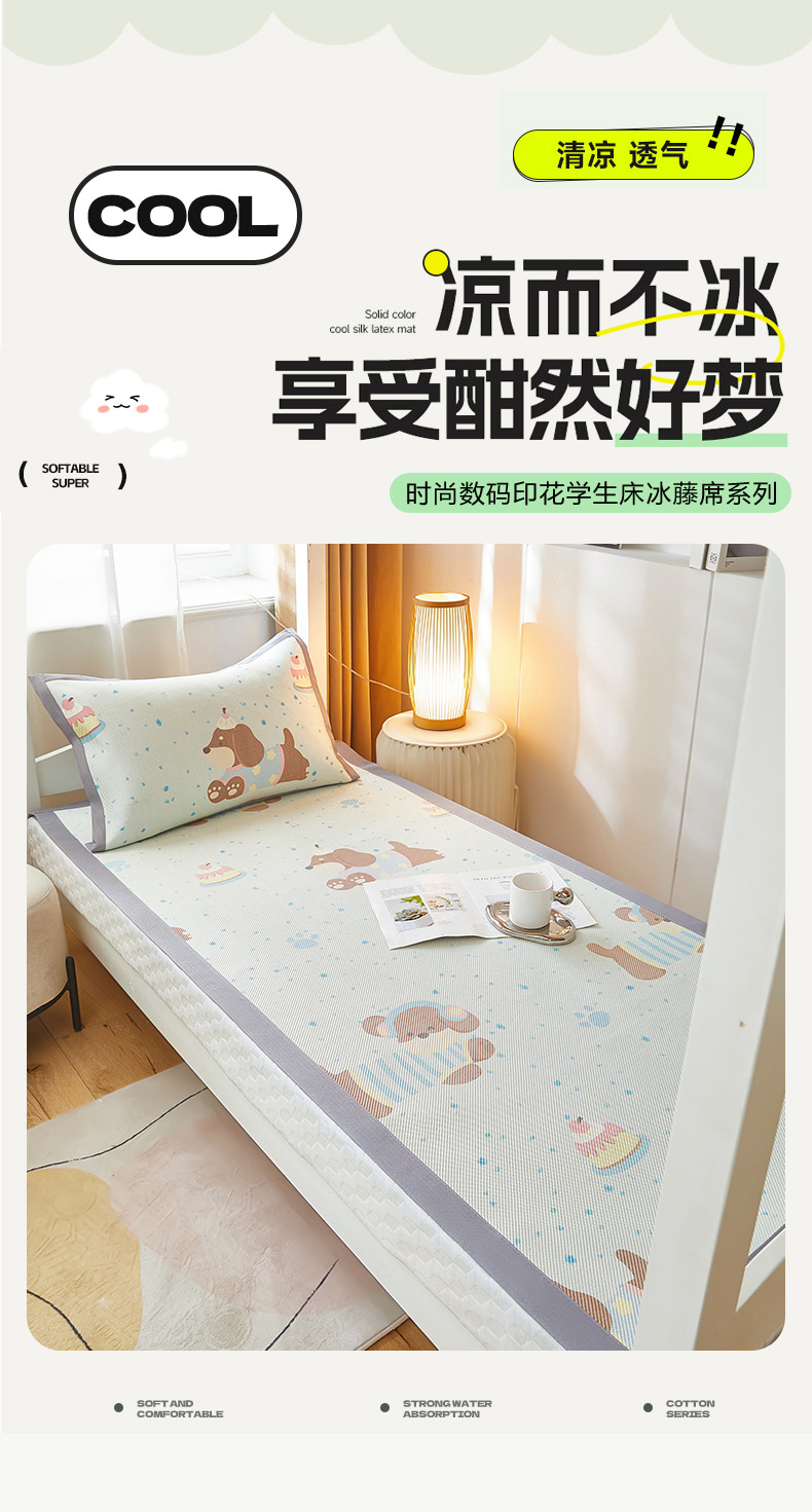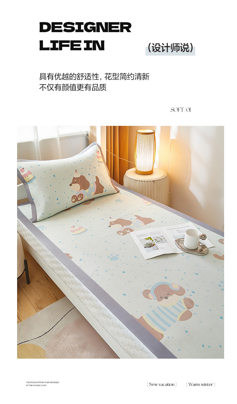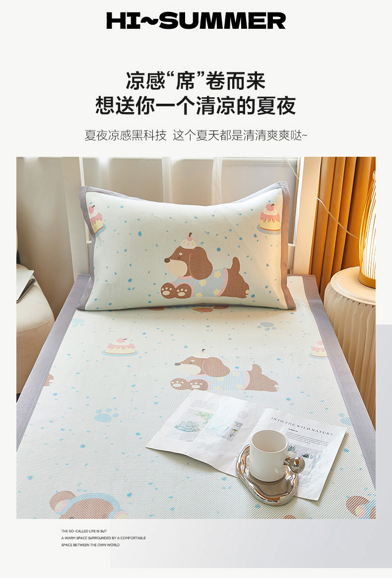 商品名称:沐慕 2025新款学生床小清新印花冰藤席 腊肠狗