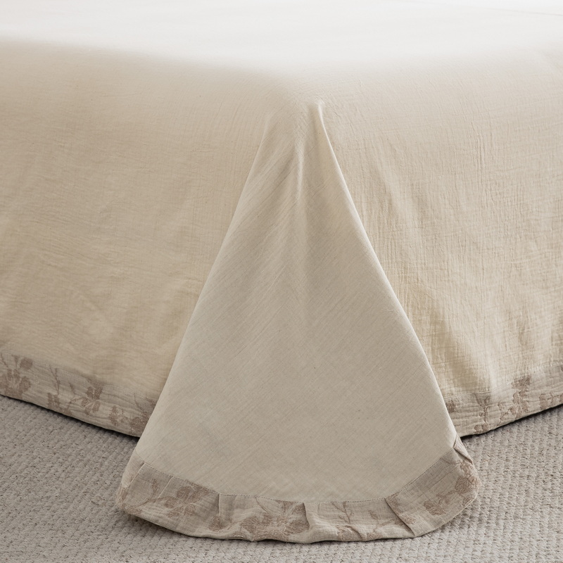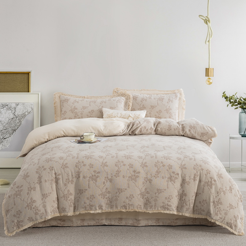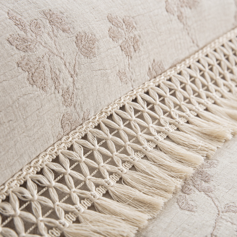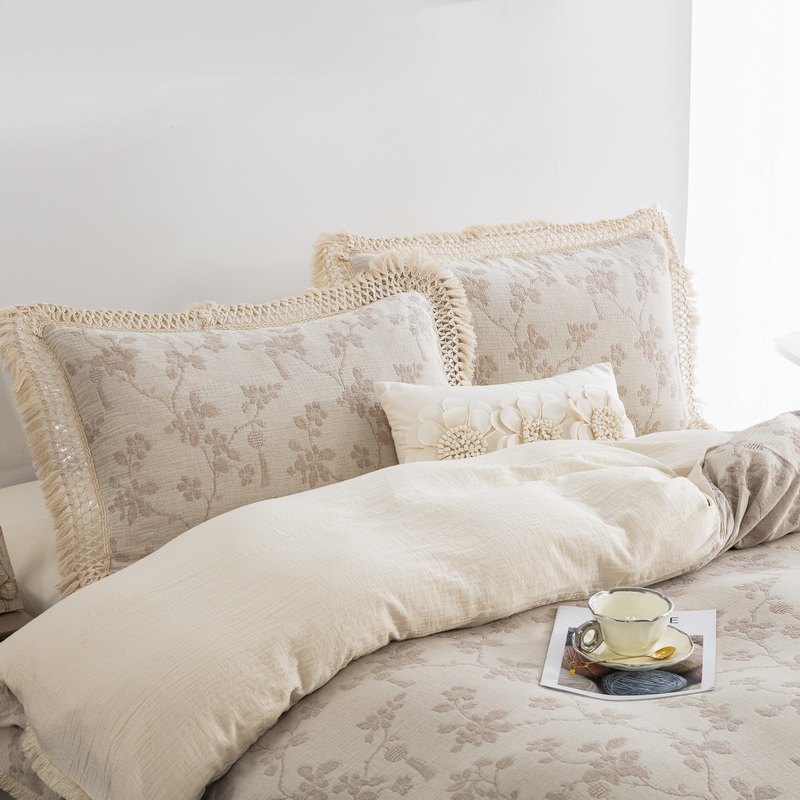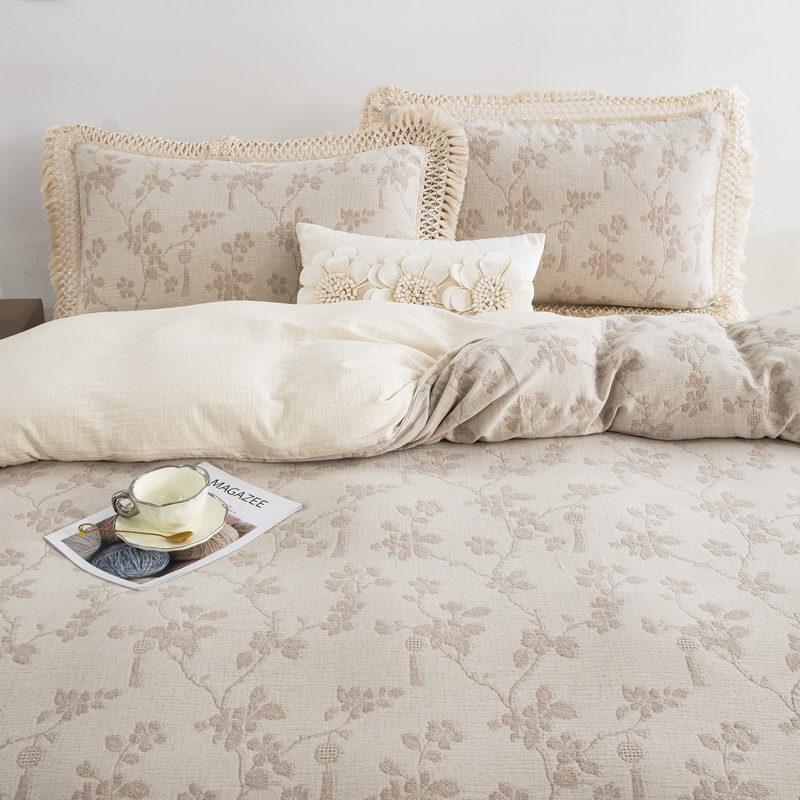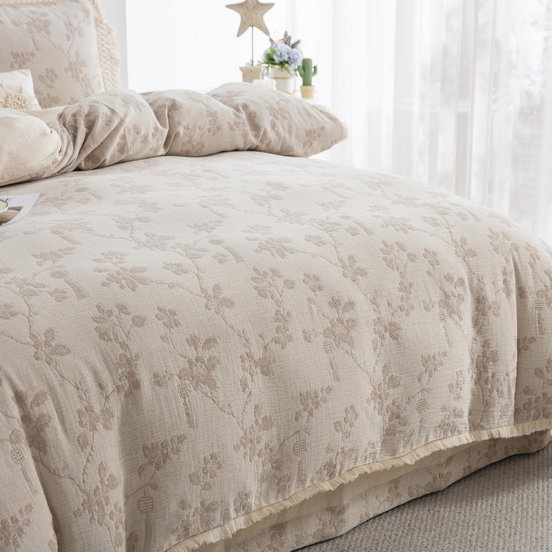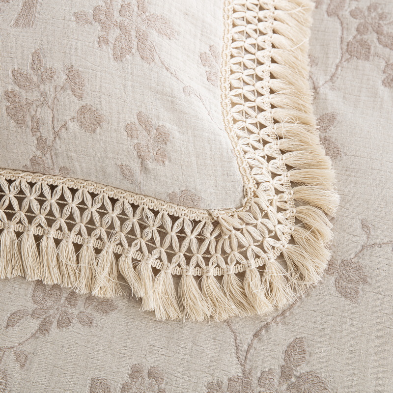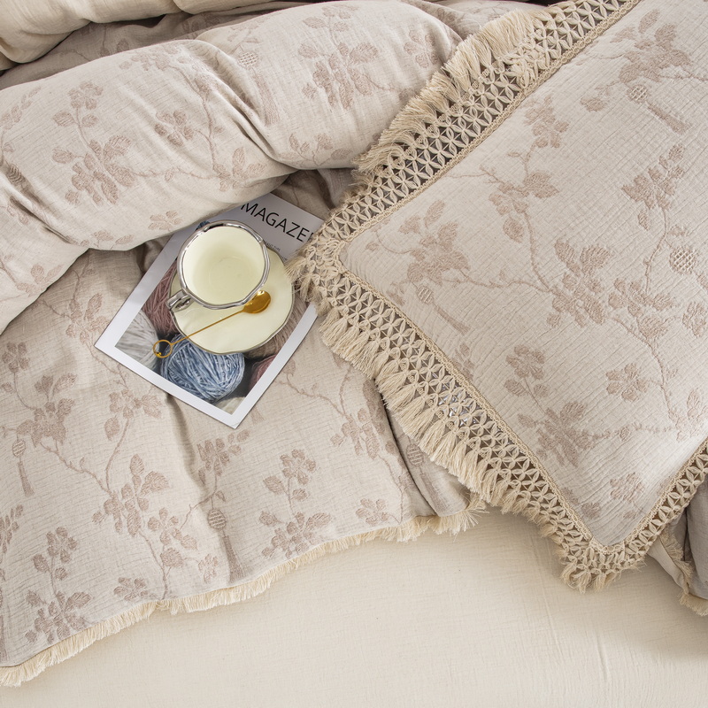商品名称:鲁爱家纺供货 2025新款AB版棉麻流苏款四件套 春晖-米咖