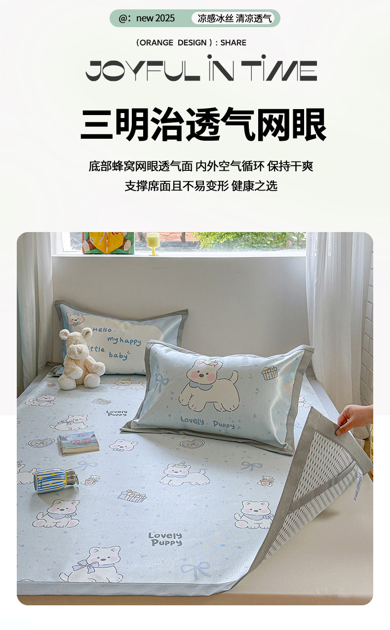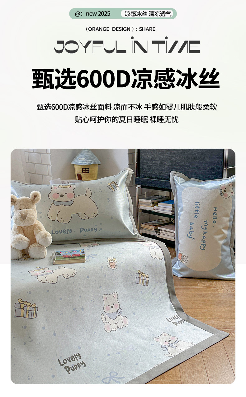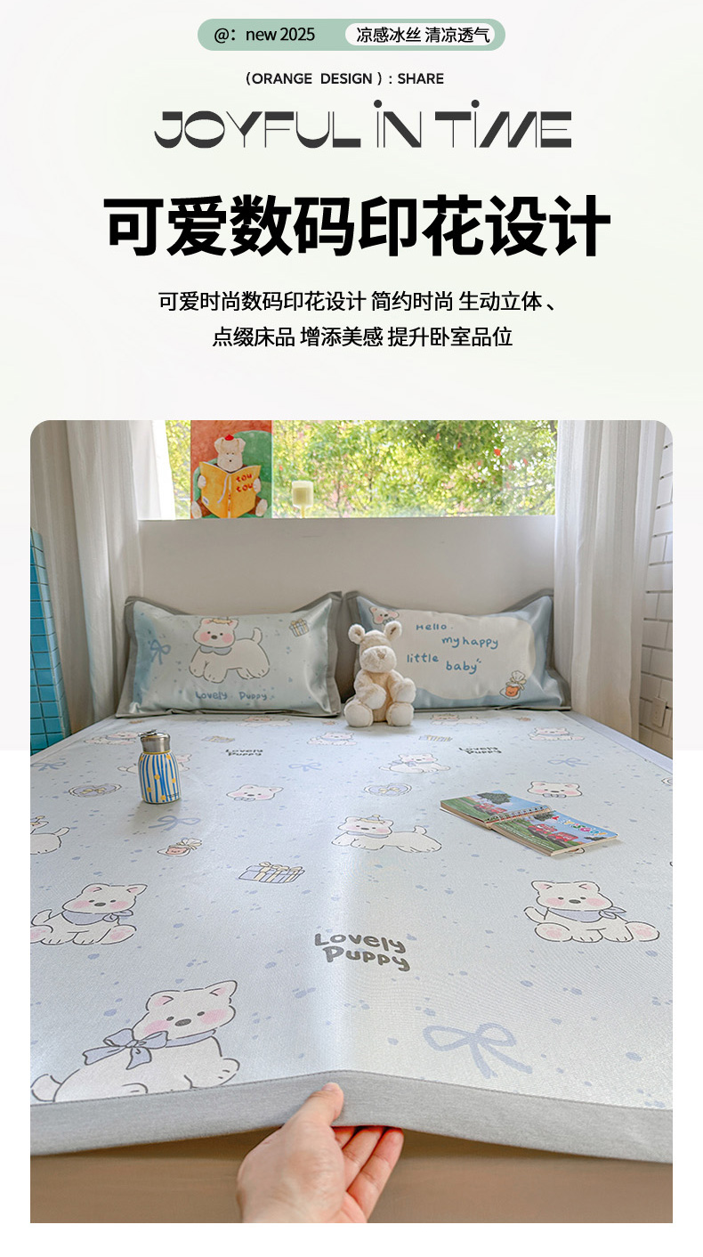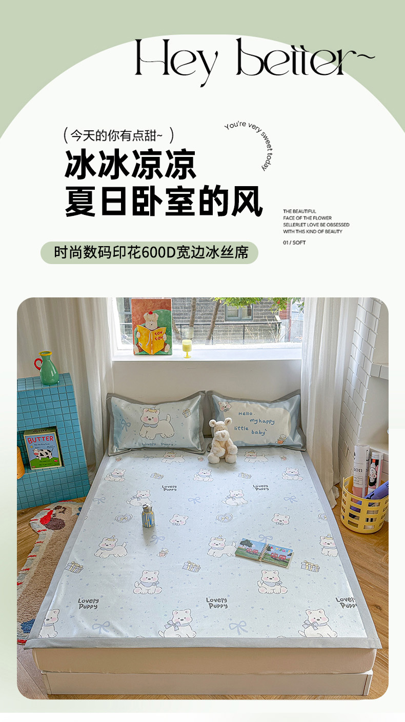 沐慕 2025新款时尚数码印花600D冰丝凉席系列 冰丝-西高地蓝