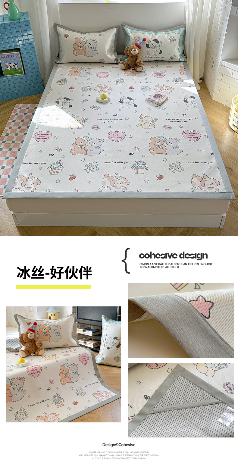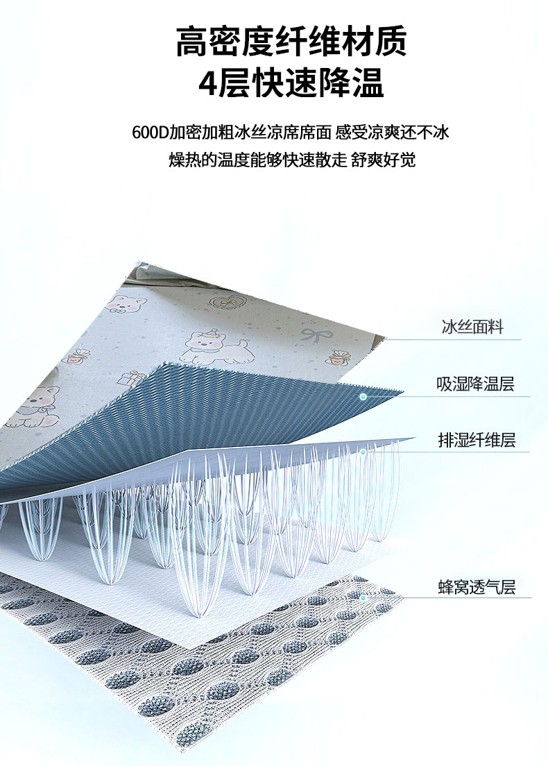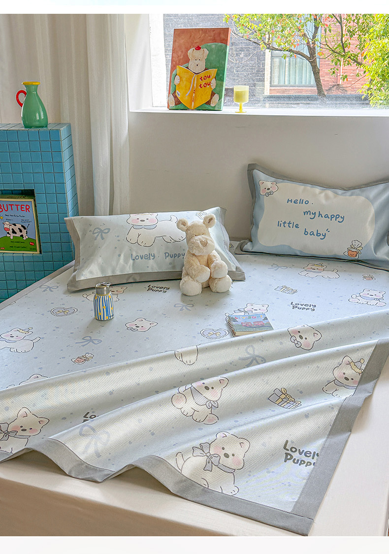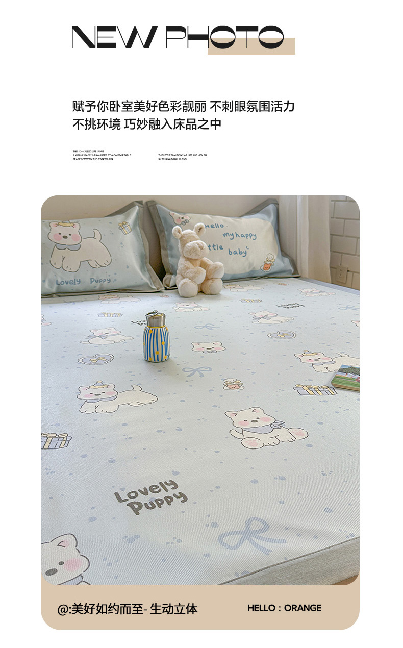 沐慕 2025新款时尚数码印花600D冰丝凉席系列 冰丝-西高地蓝