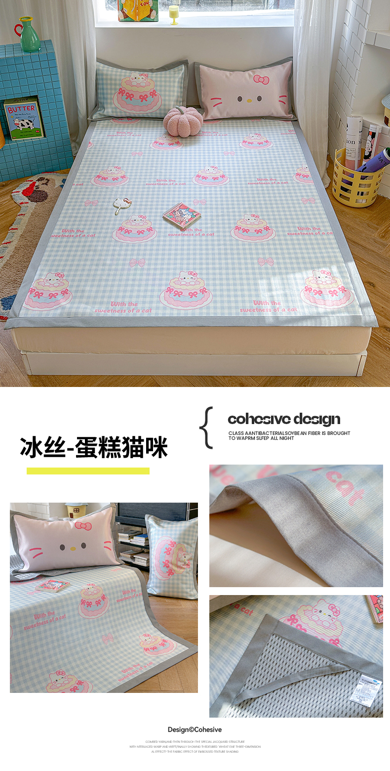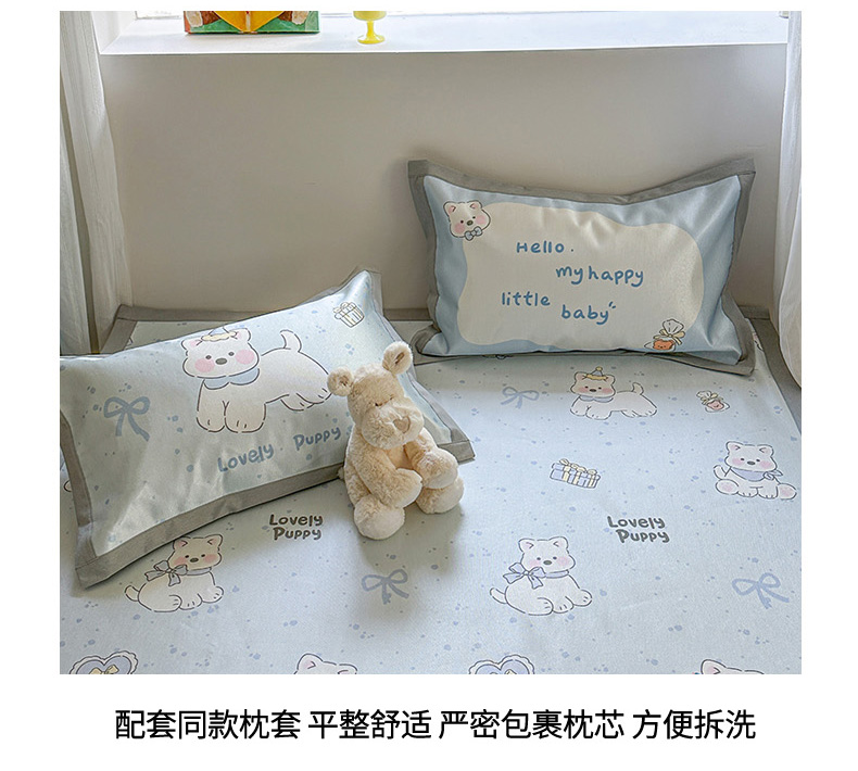 商品名称:沐慕 2025新款时尚数码印花600D冰丝凉席系列 冰丝-西高地蓝