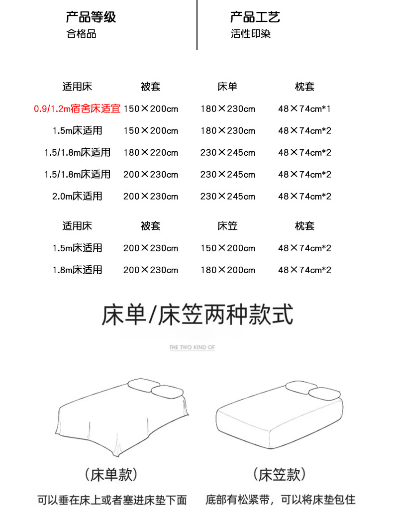 1.8m床笠四件套被套200x230cm | ¥69.00 |