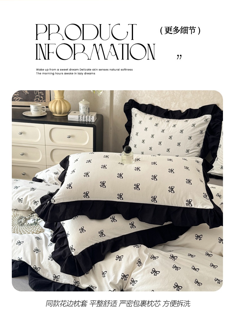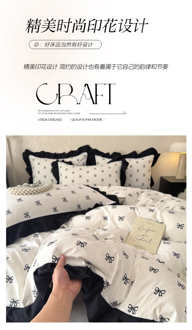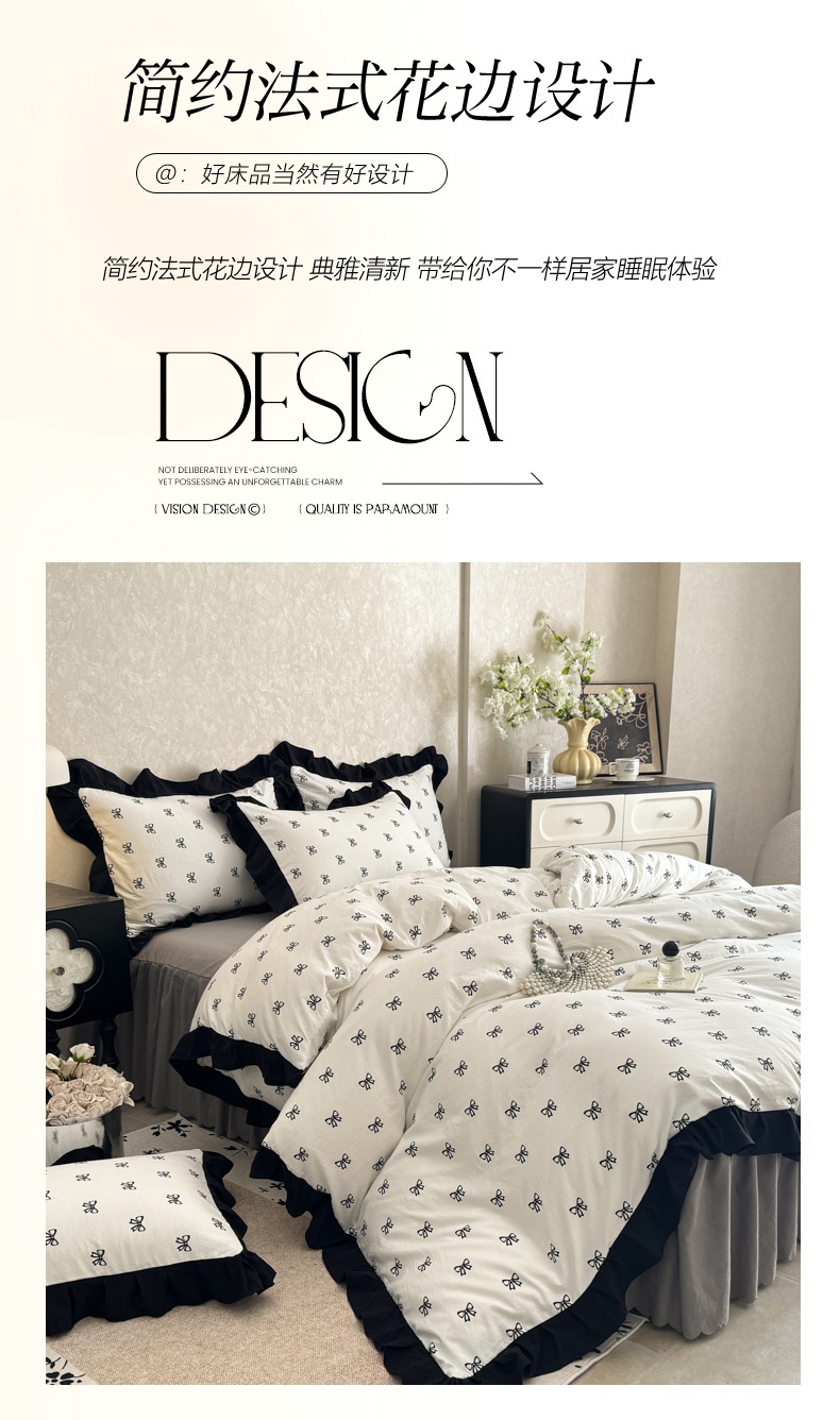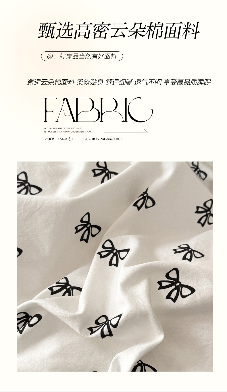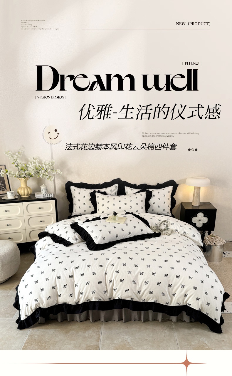 当前位置: 91家纺网 > 商品网购 > 床品套件 > 四件套 > 其它四件套 > 上尚居 2025新款法式花边赫本风印花云朵棉四件套 黑色蝴蝶结