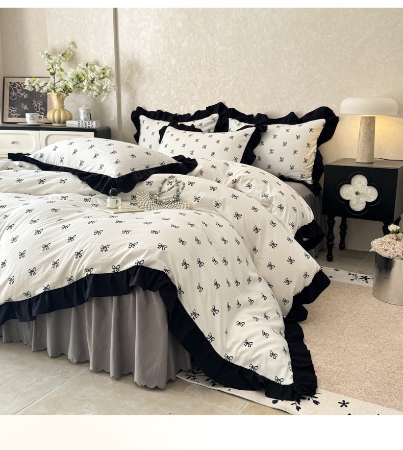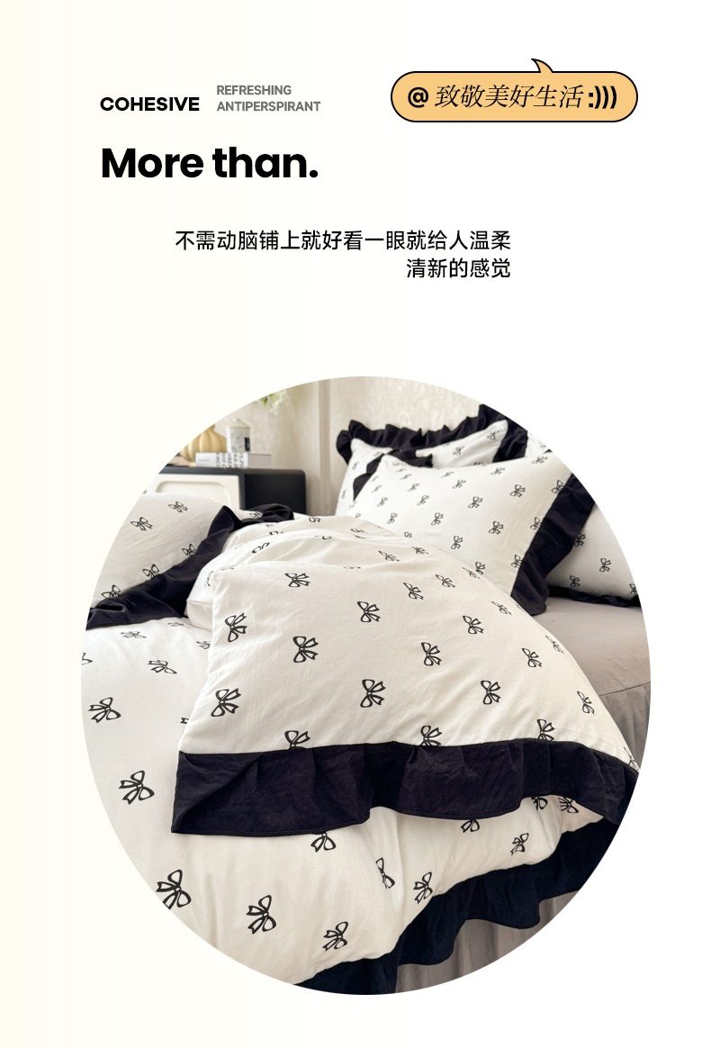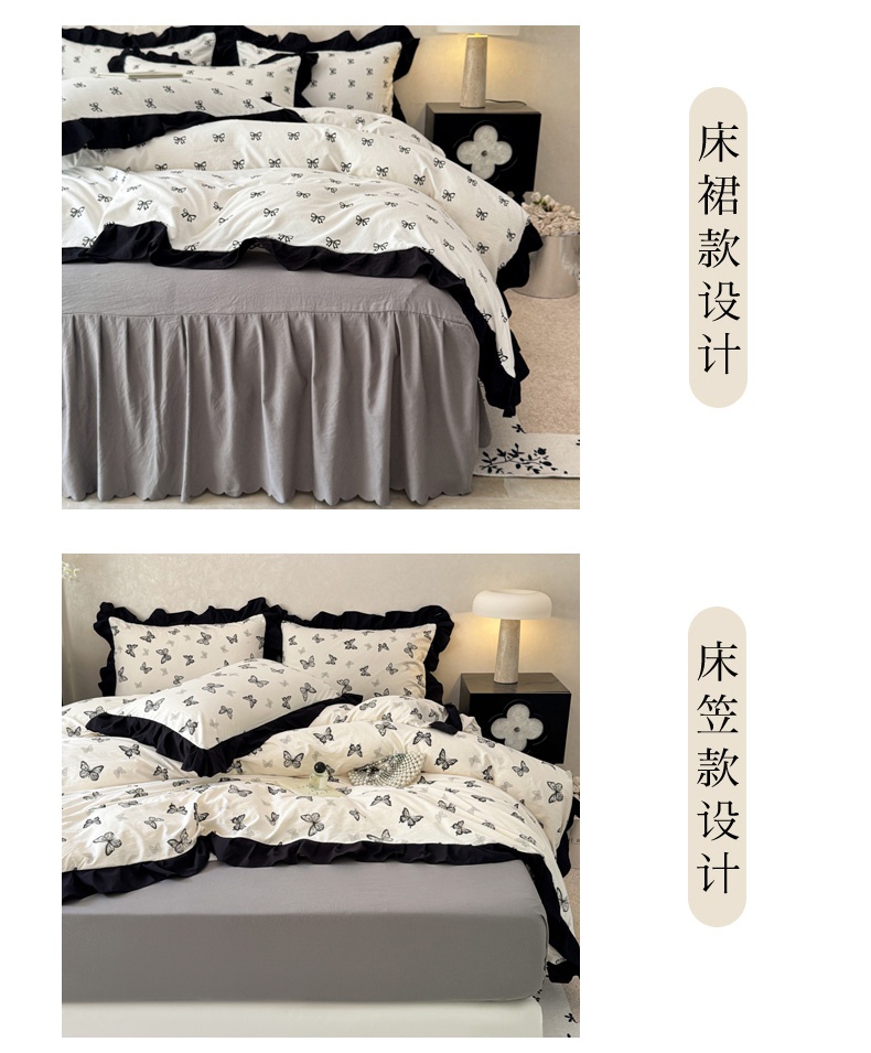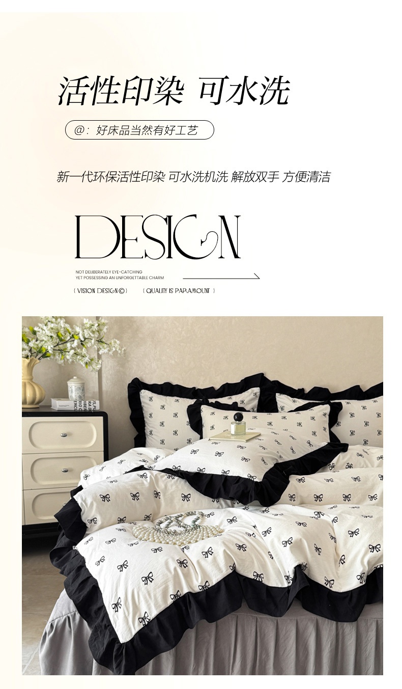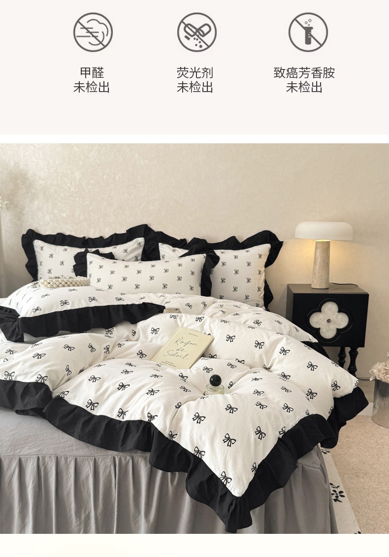 当前位置: 91家纺网 > 商品网购 > 床品套件 > 四件套 > 其它四件套 > 上尚居 2025新款法式花边赫本风印花云朵棉四件套 黑色蝴蝶结