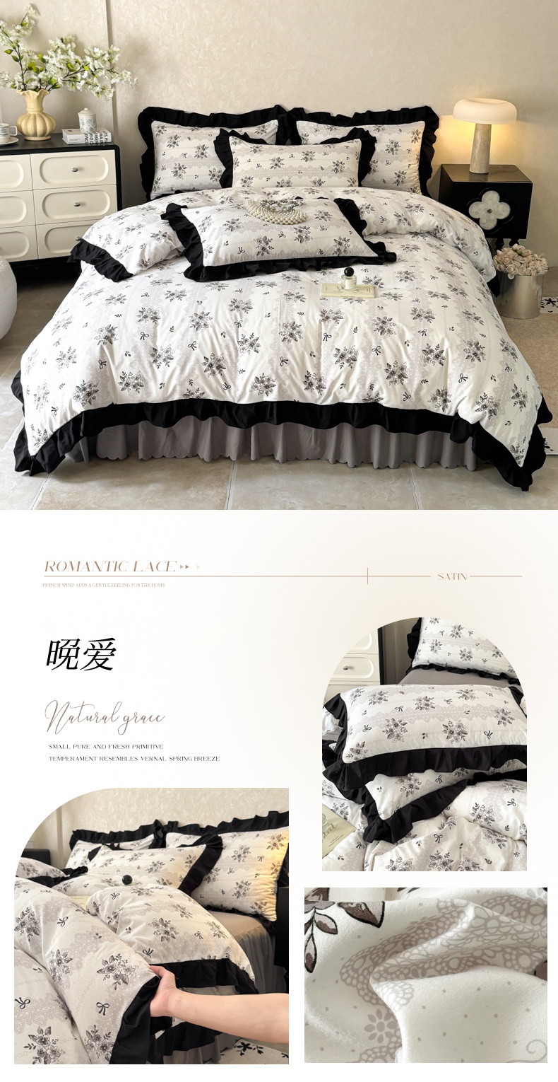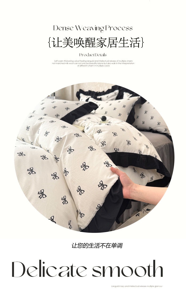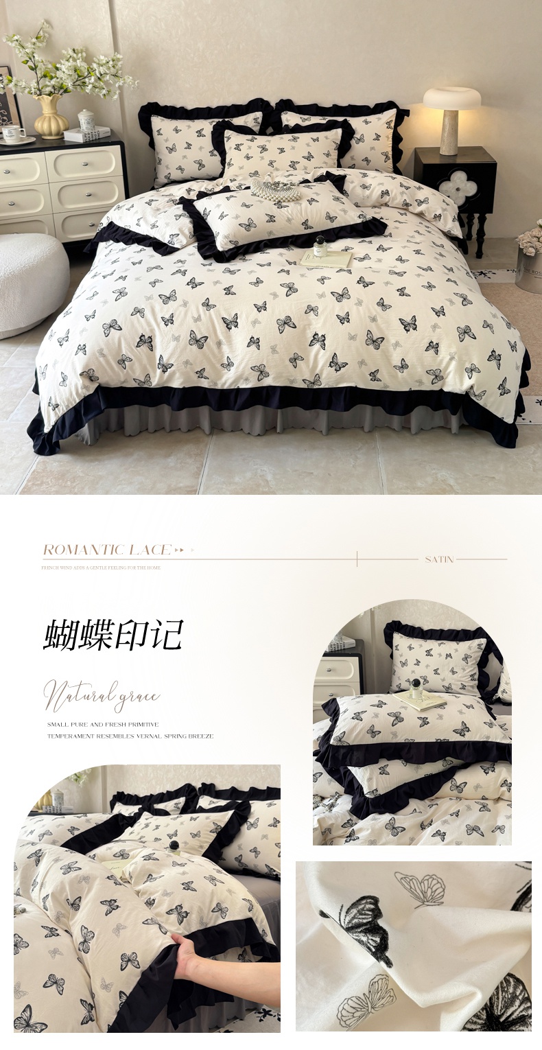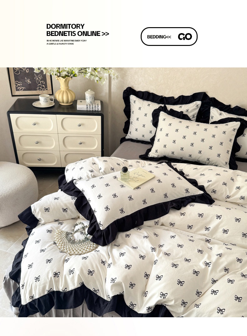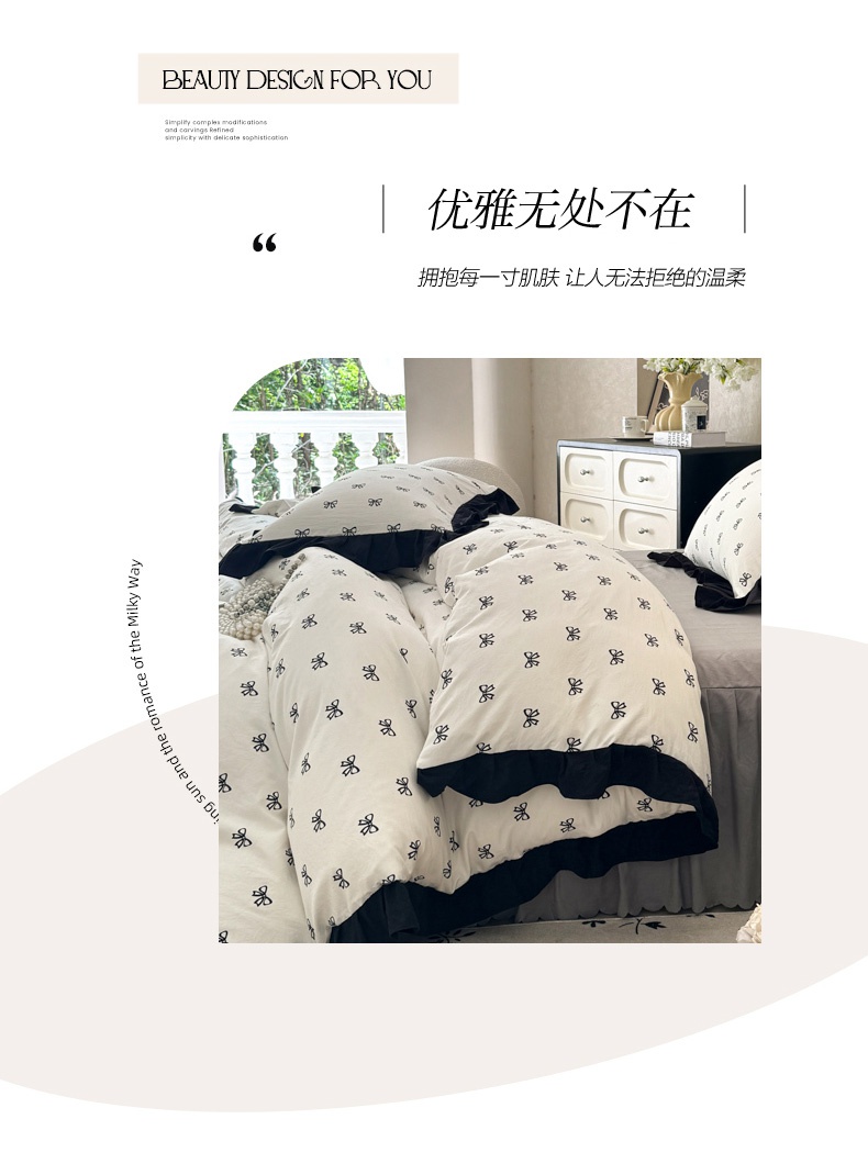当前位置: 91家纺网 > 商品网购 > 床品套件 > 四件套 > 其它四件套 > 上尚居 2025新款法式花边赫本风印花云朵棉四件套 黑色蝴蝶结