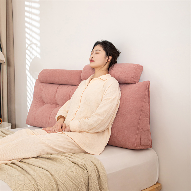 沐沐家纺 2026新款雪尼绒三角靠背带头枕 豆沙
