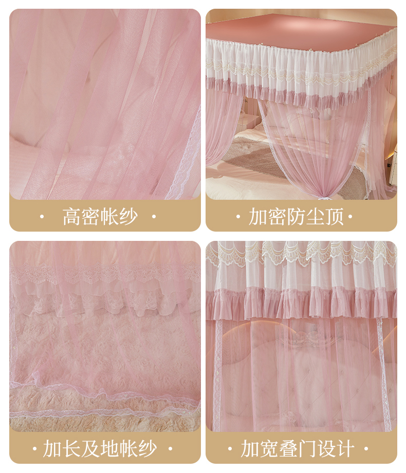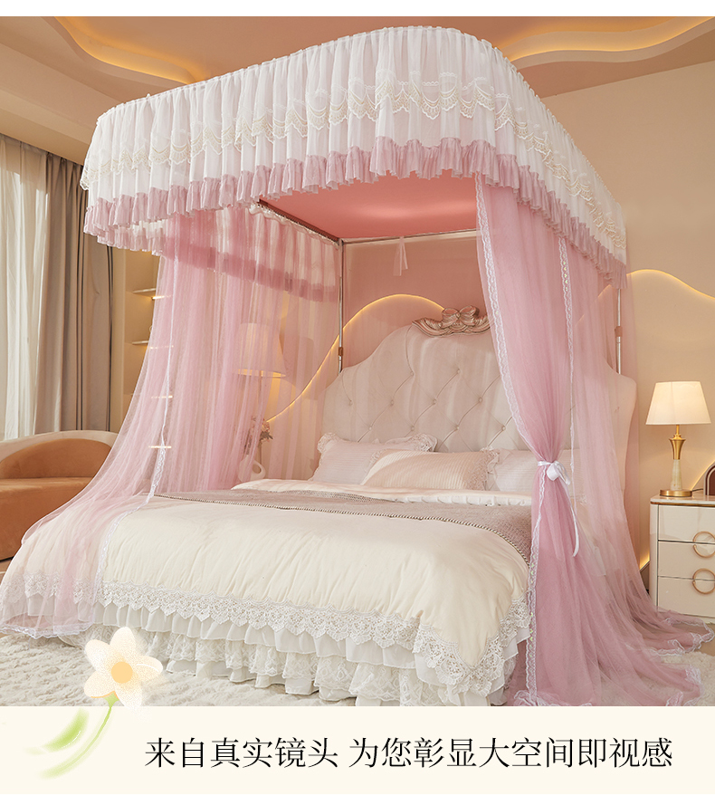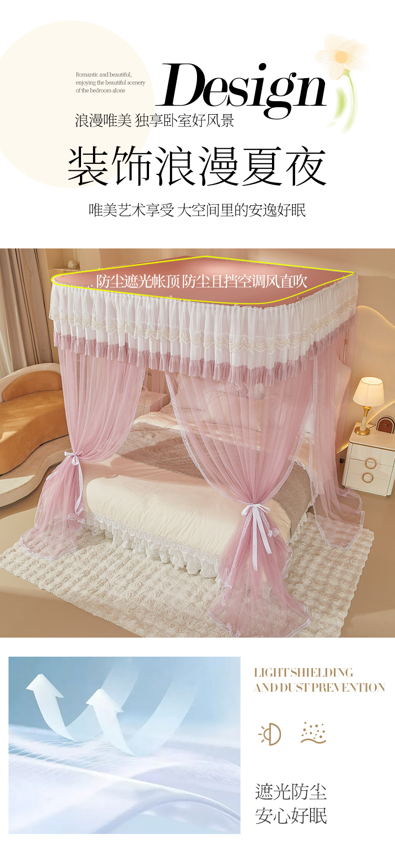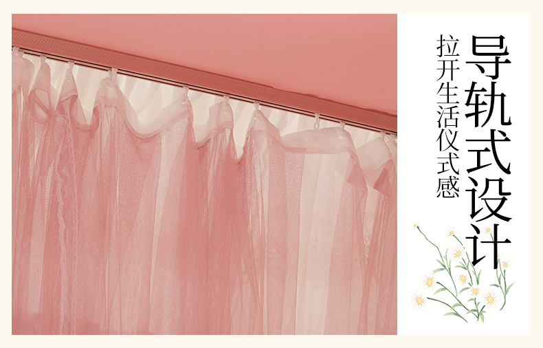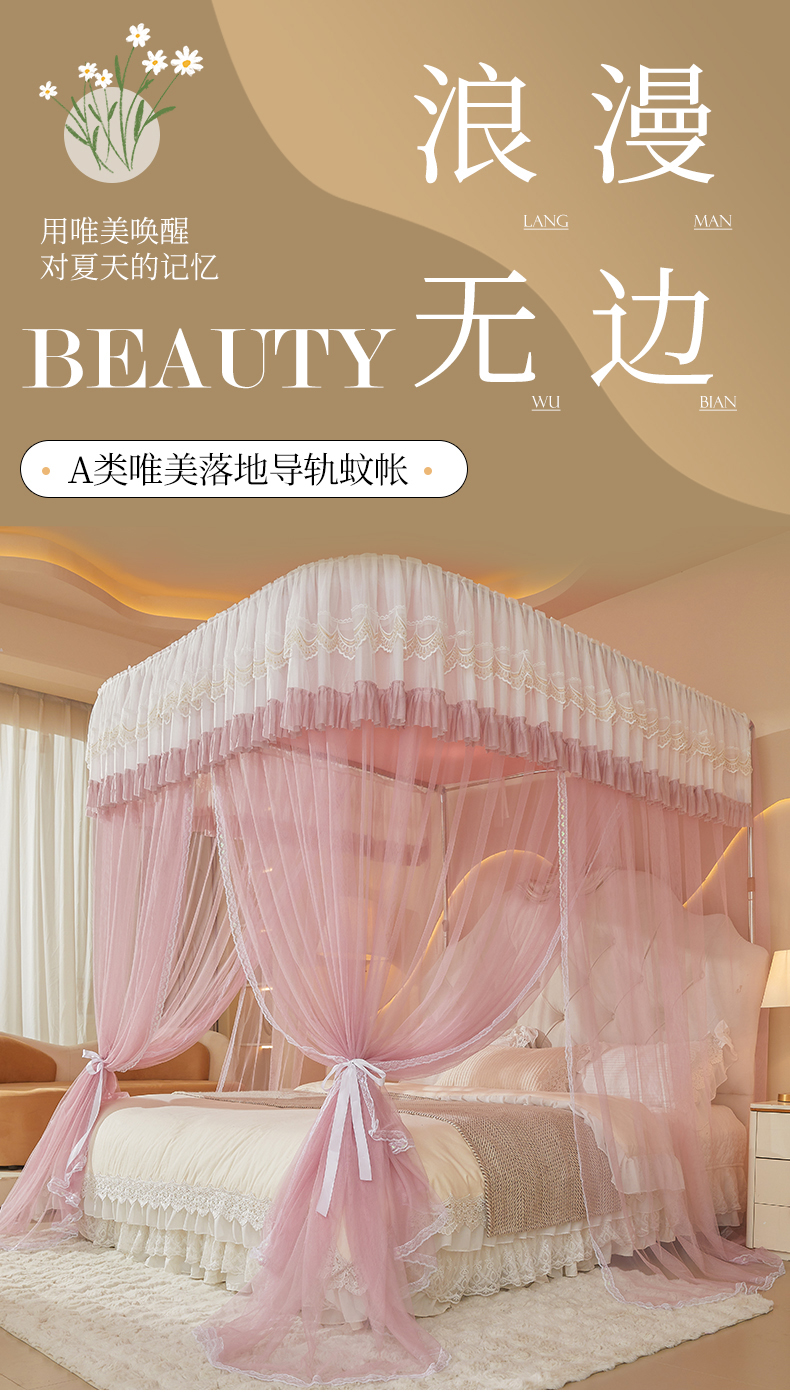 商品名称:迪凡保罗蚊帐 2025新款2513款双轨铝合金落地导轨蚊帐 樱花粉