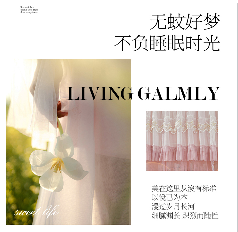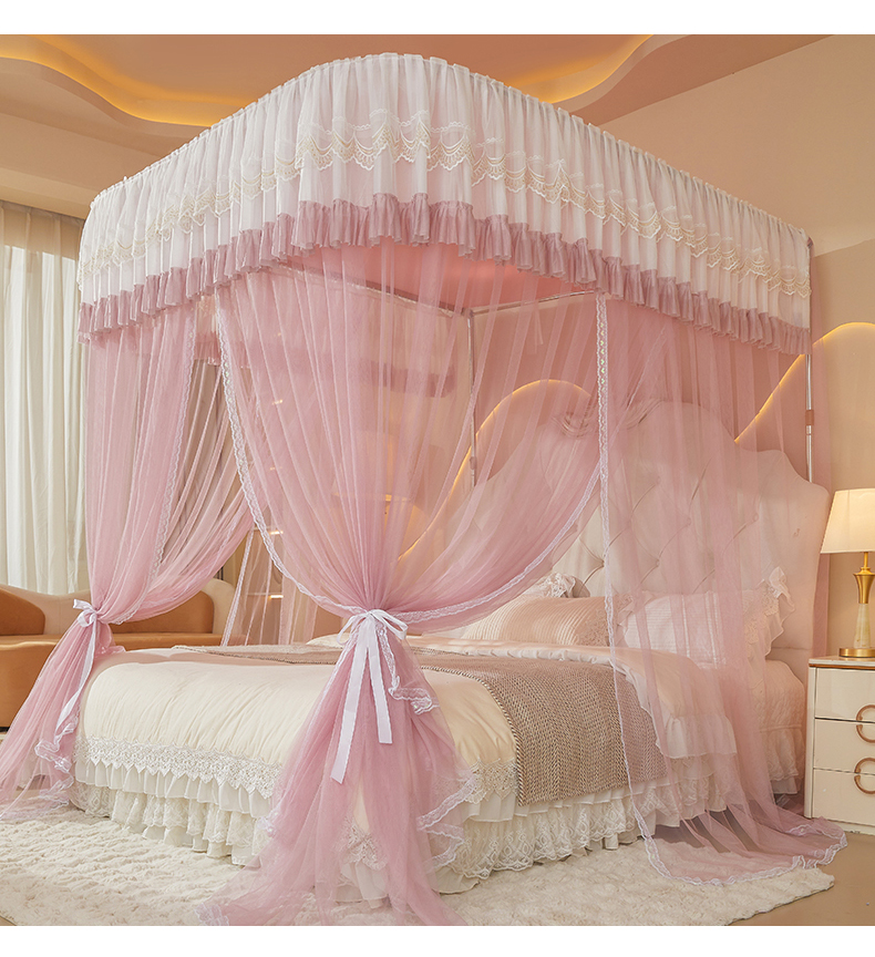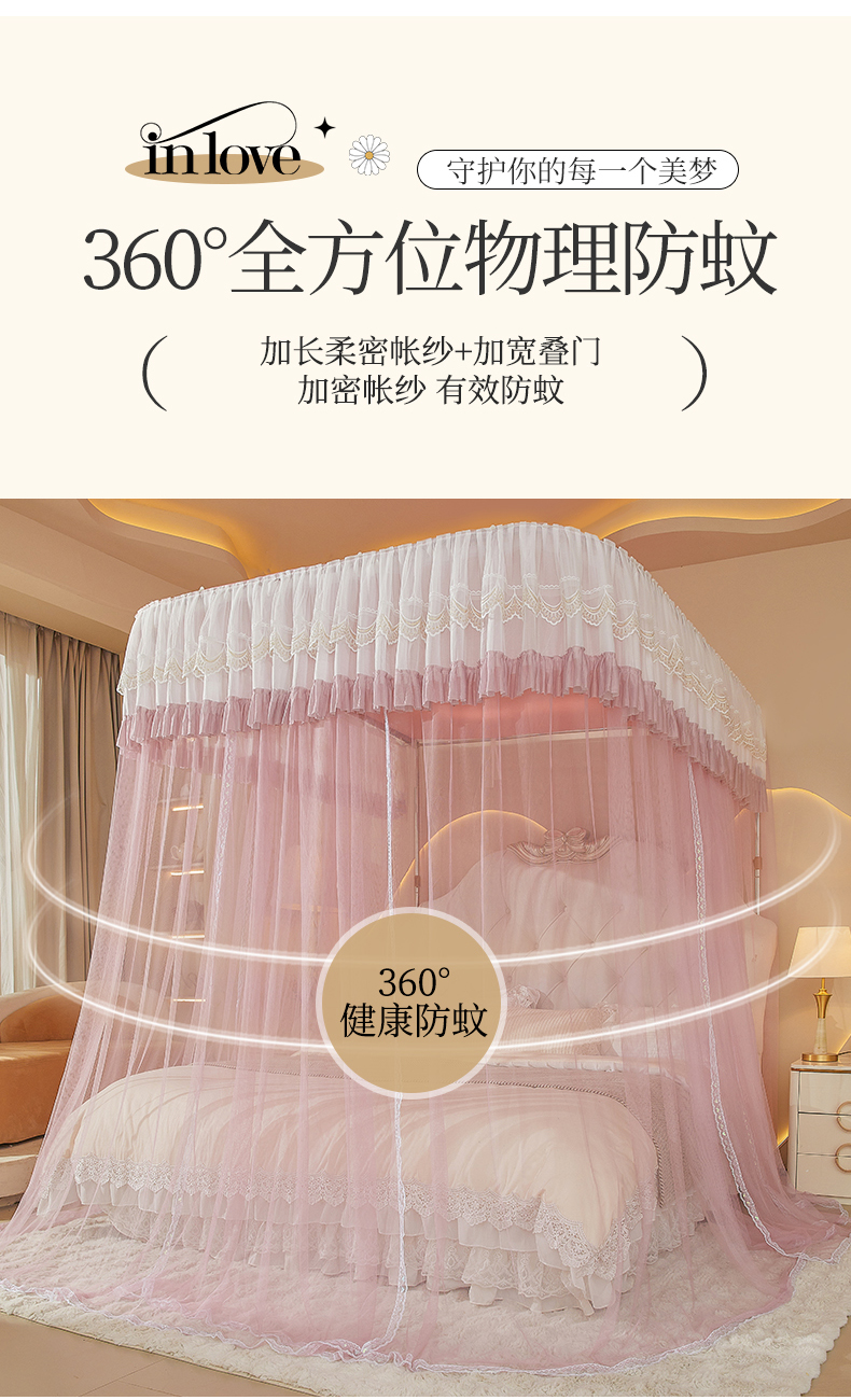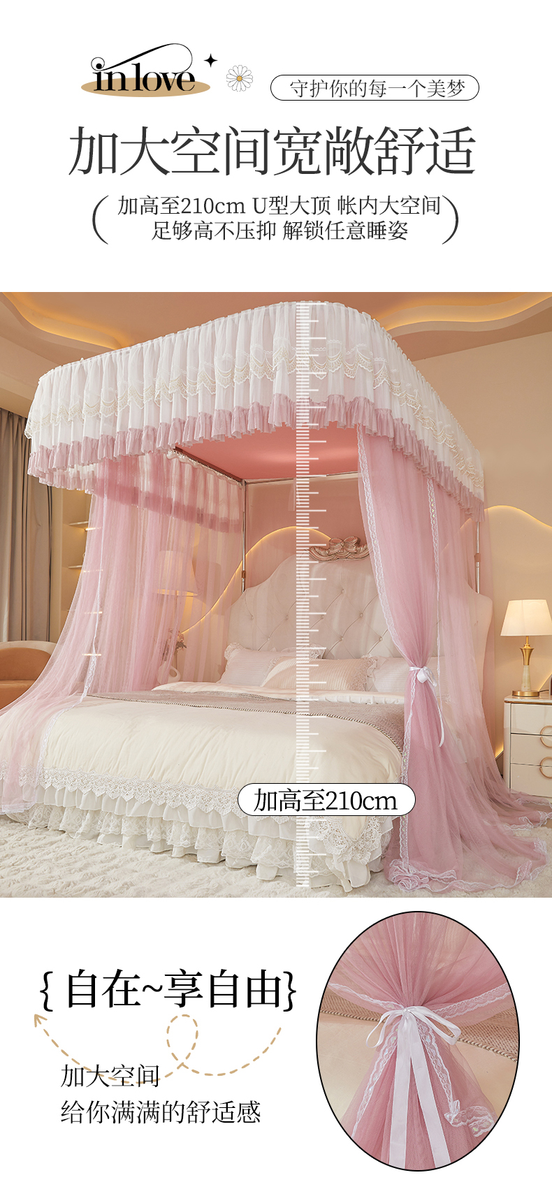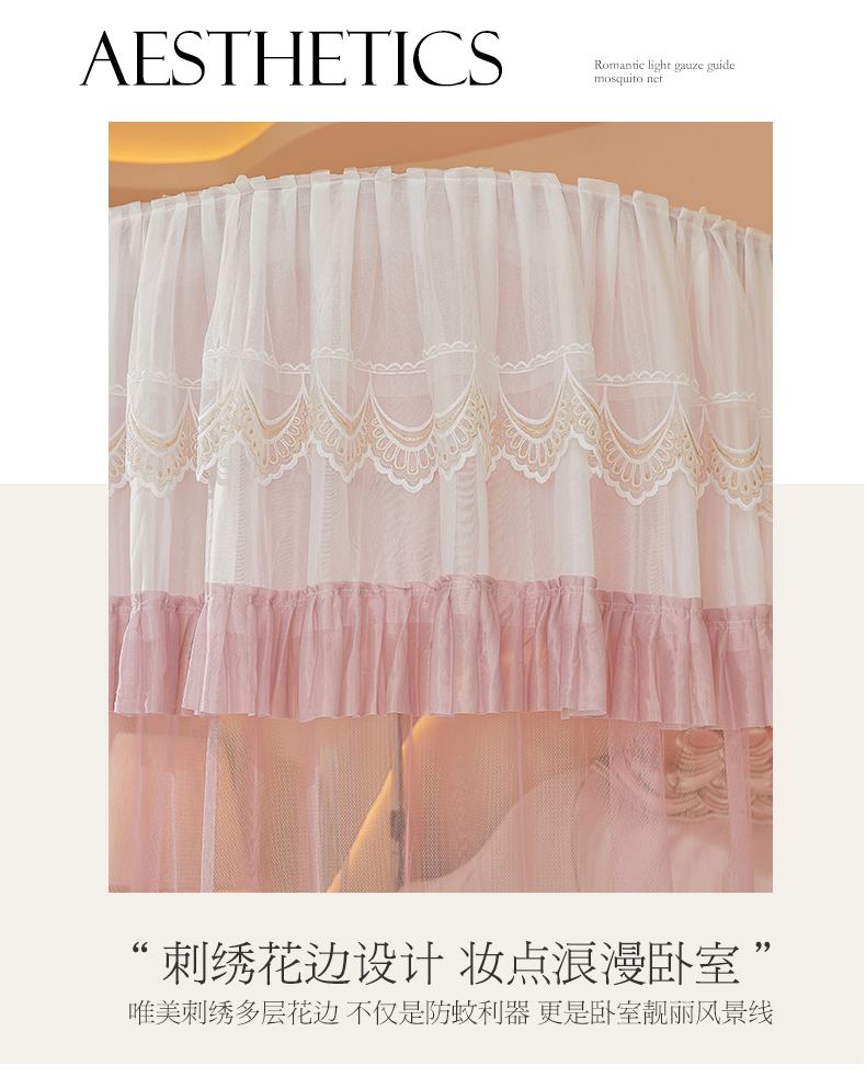 商品名称:迪凡保罗蚊帐 2025新款2513款双轨铝合金落地导轨蚊帐 樱花粉