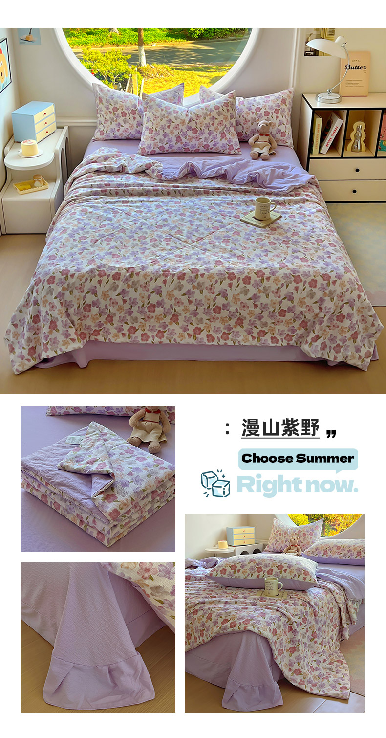 商品名称:金梦拉家纺 2025新款A类提花纱布双层纱夏被四件套 夏被-漫山紫野
