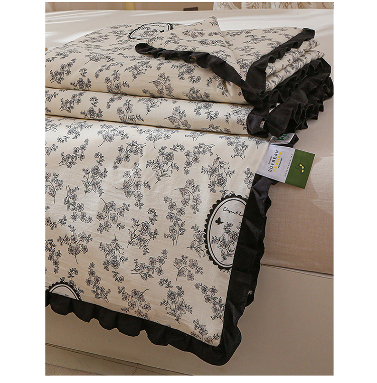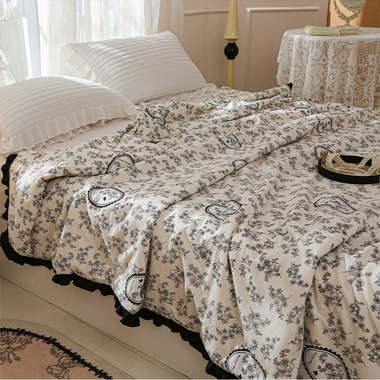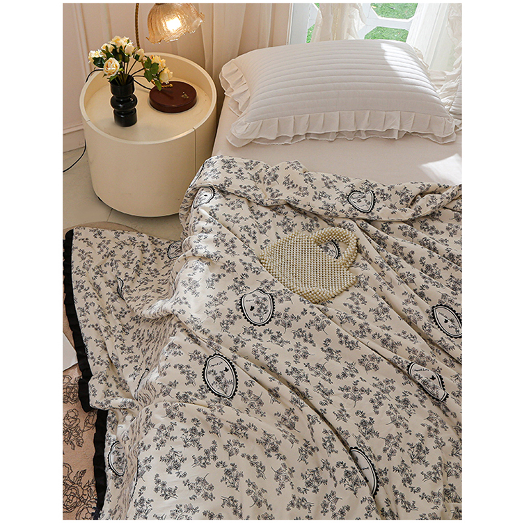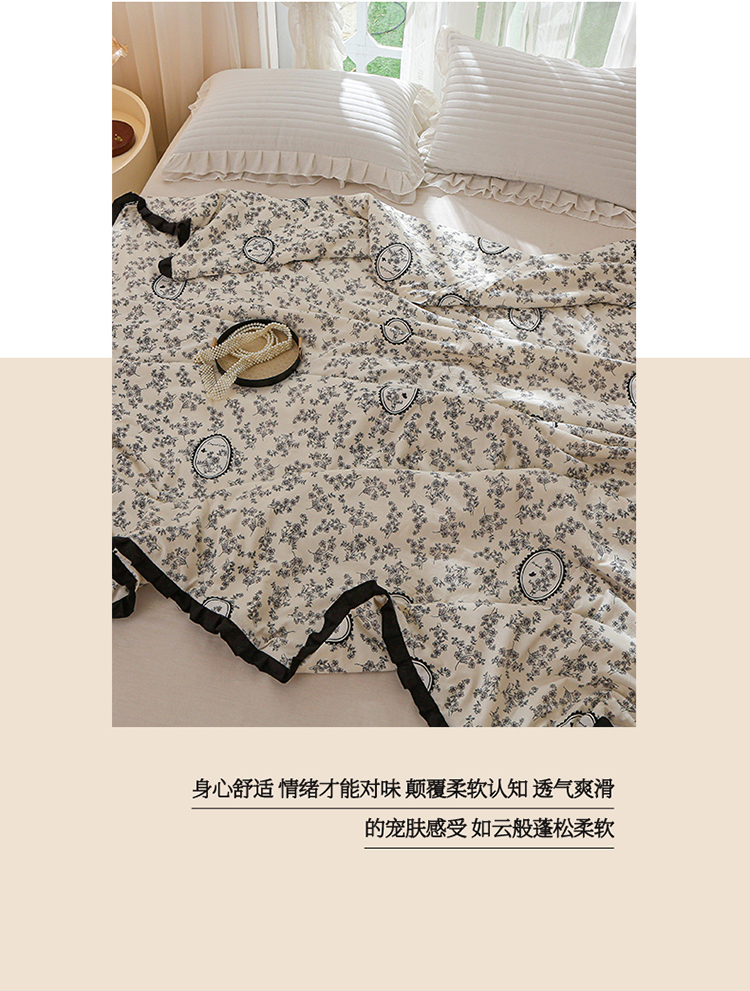 商品名称:薇玛仕 2025新款韩版宽边水洗棉大豆夏被赫本风亲肤柔软夏季薄被子 赫本-镜中花