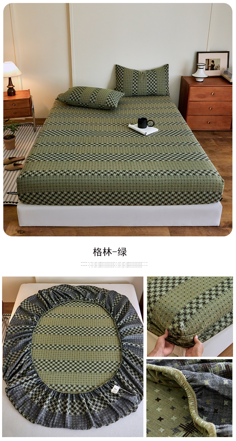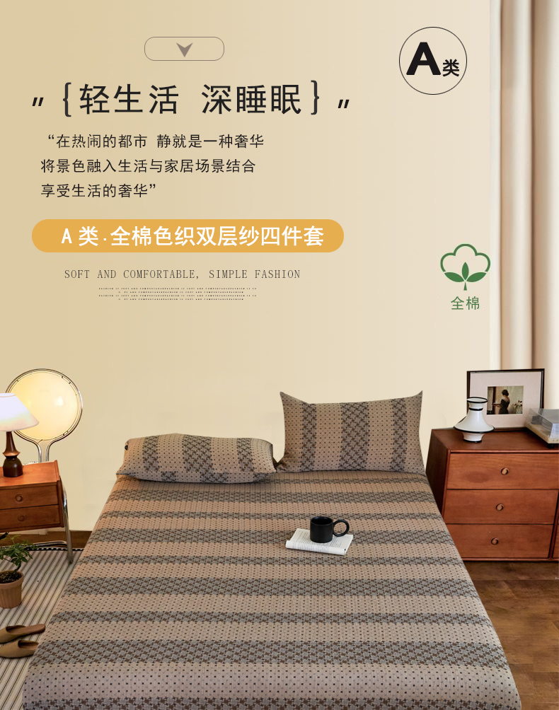 (总)云雀 2025新款A类全棉色织双层纱四件套,格林-豆纱,格林-咖色,格林-绿,格林-浅灰,格林-深灰,格林-烟红,格林-烟灰