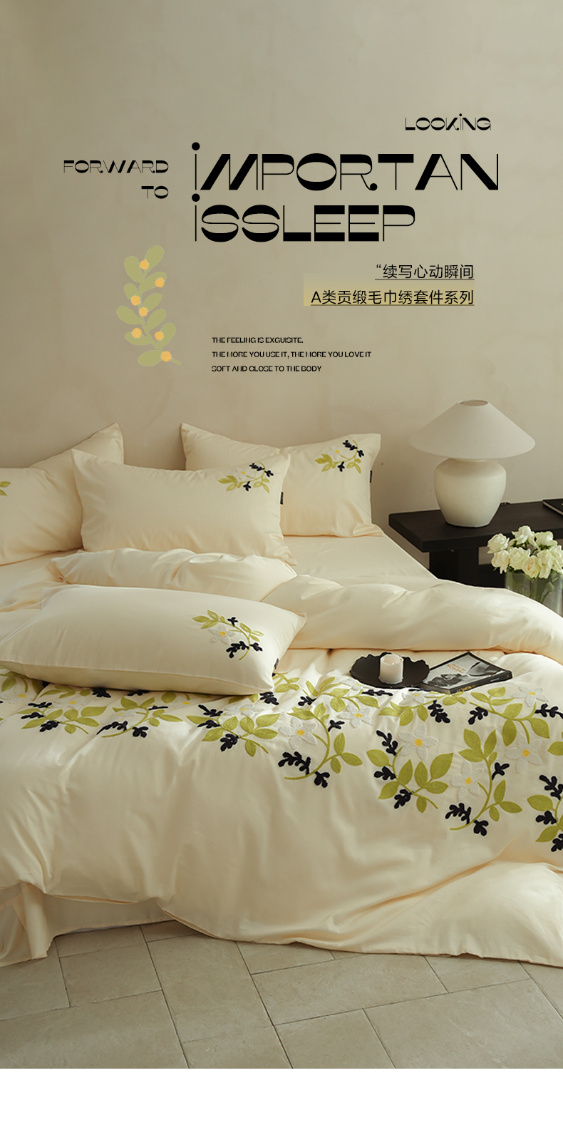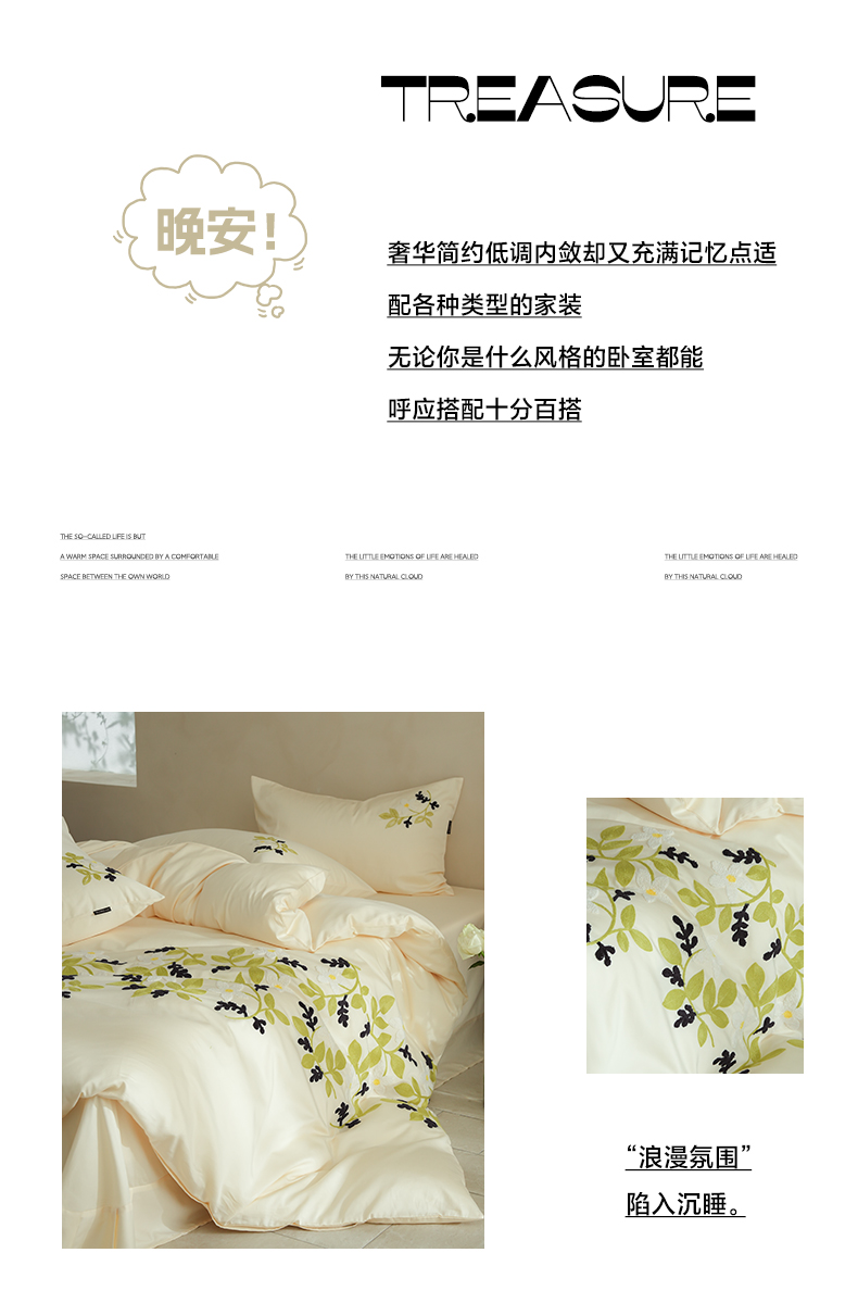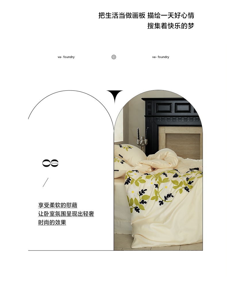 秀色家纺 2025新款小清新60s长绒棉四件套纯棉全棉毛巾绣被套床单轻奢床品-网红风 绿叶白花