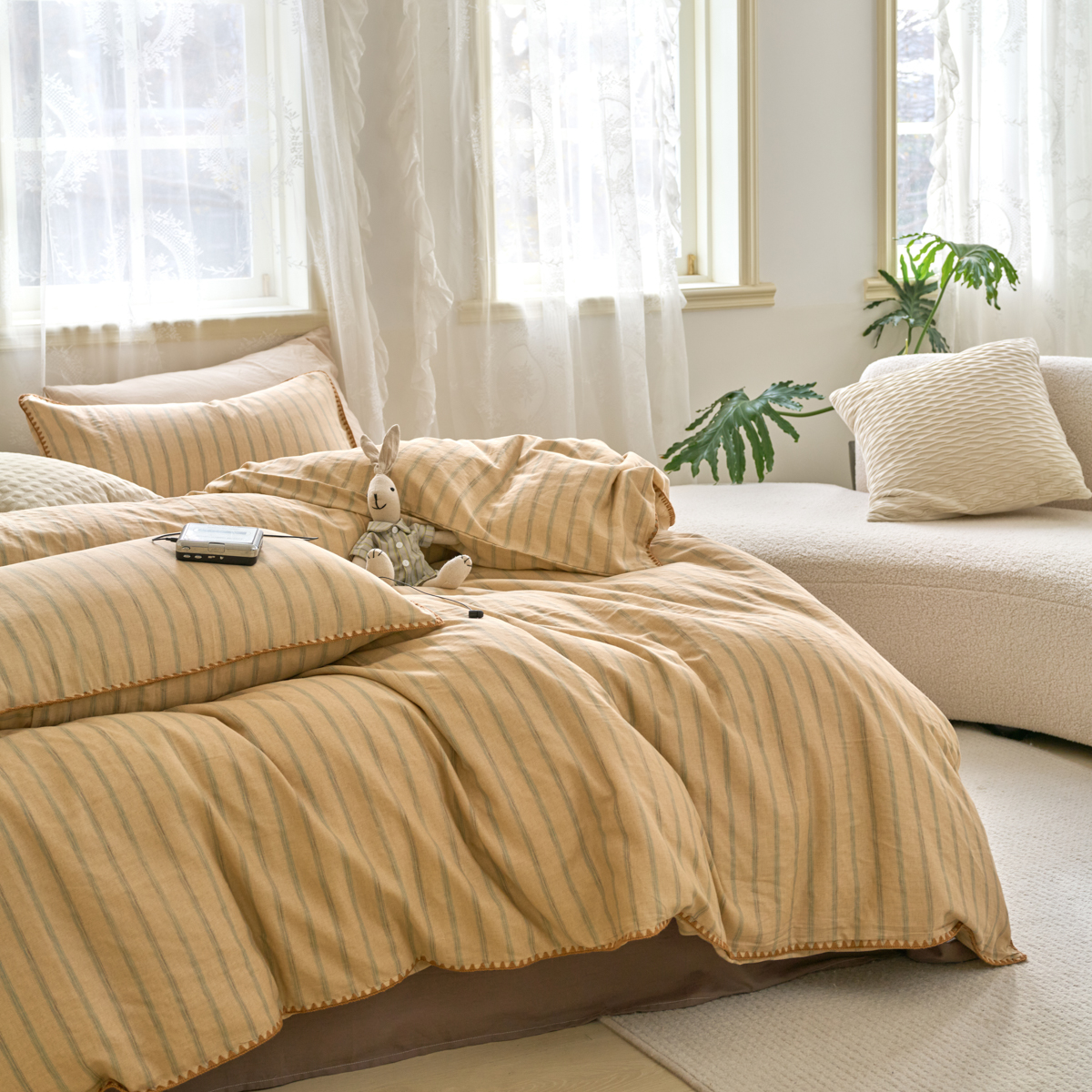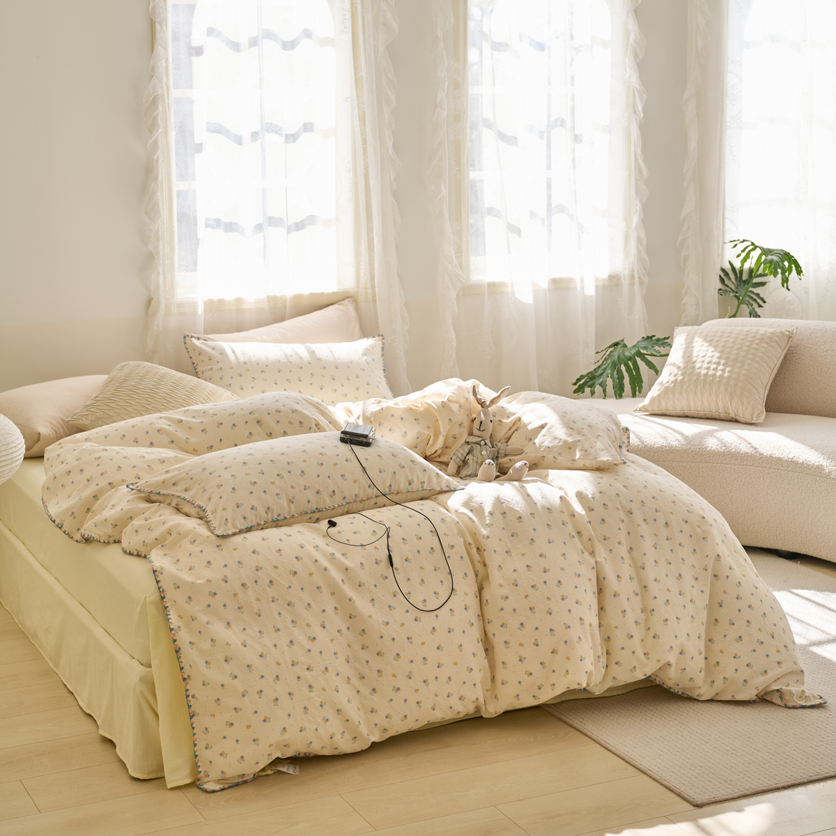(总)洋铭区 2023新款全棉床盖三件套,微醺白