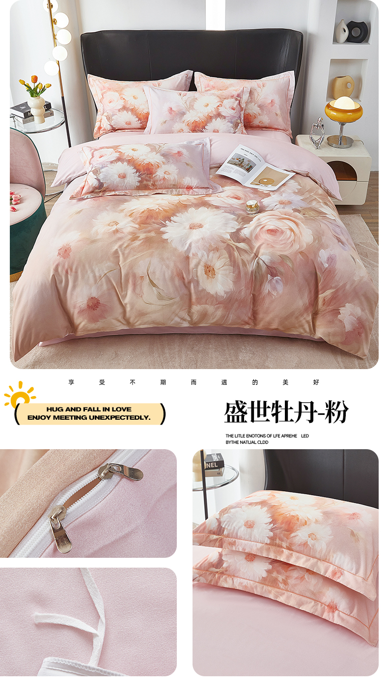 雲归梦 2025春夏新款全棉纯棉5D数码印花四件套 花语悠然-粉