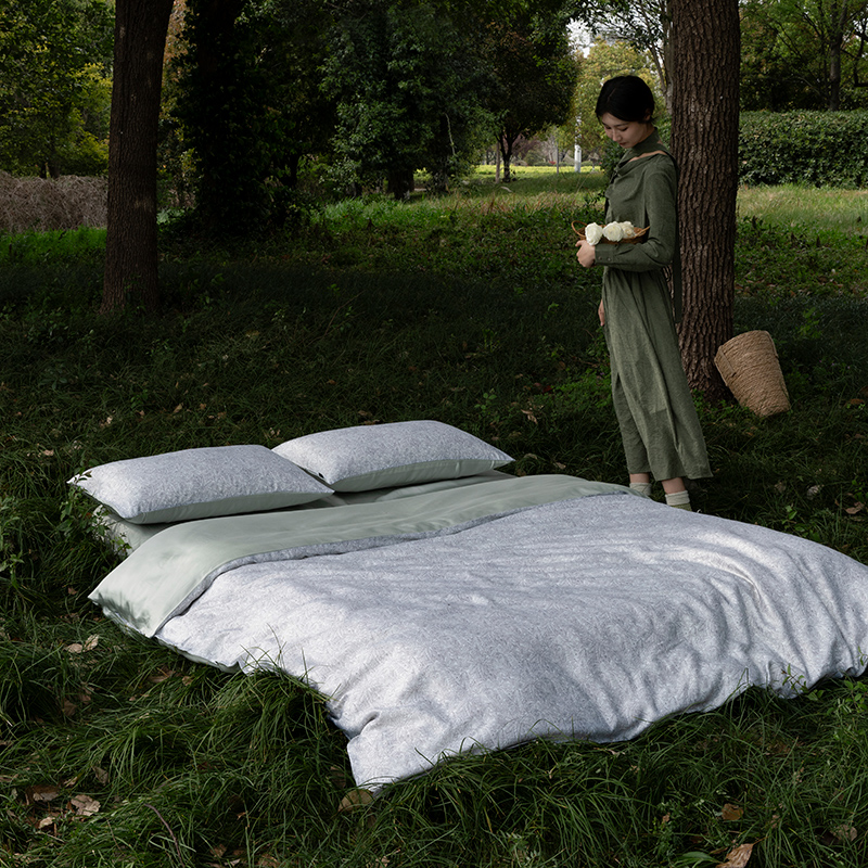 商品名称:禾时 2025新款60S兰精天丝数码印花四件套 幽幽暗香绿