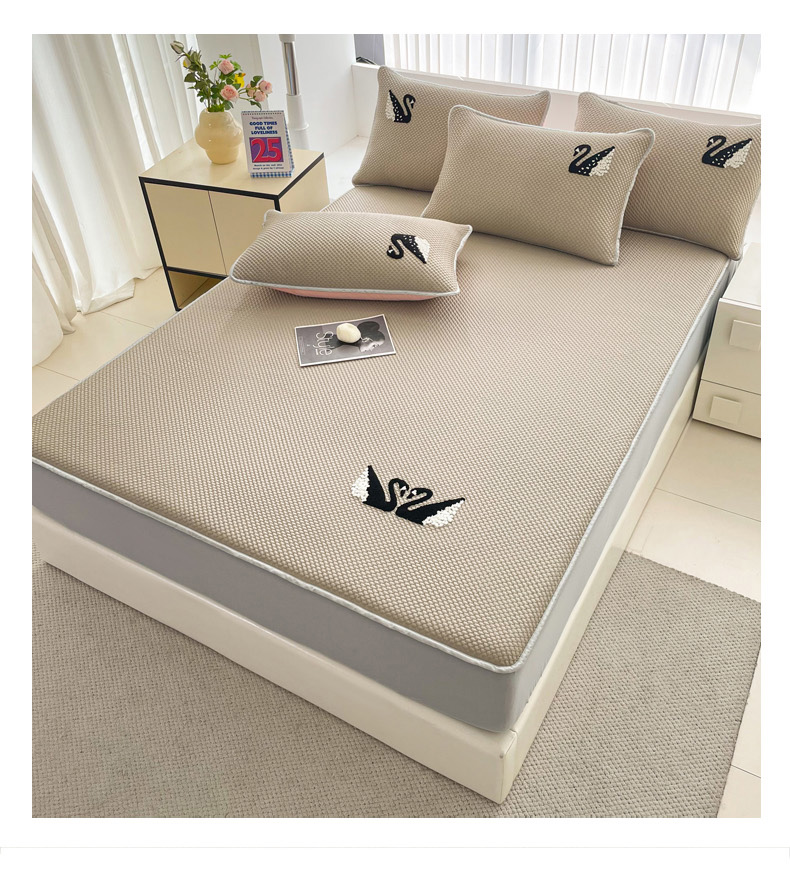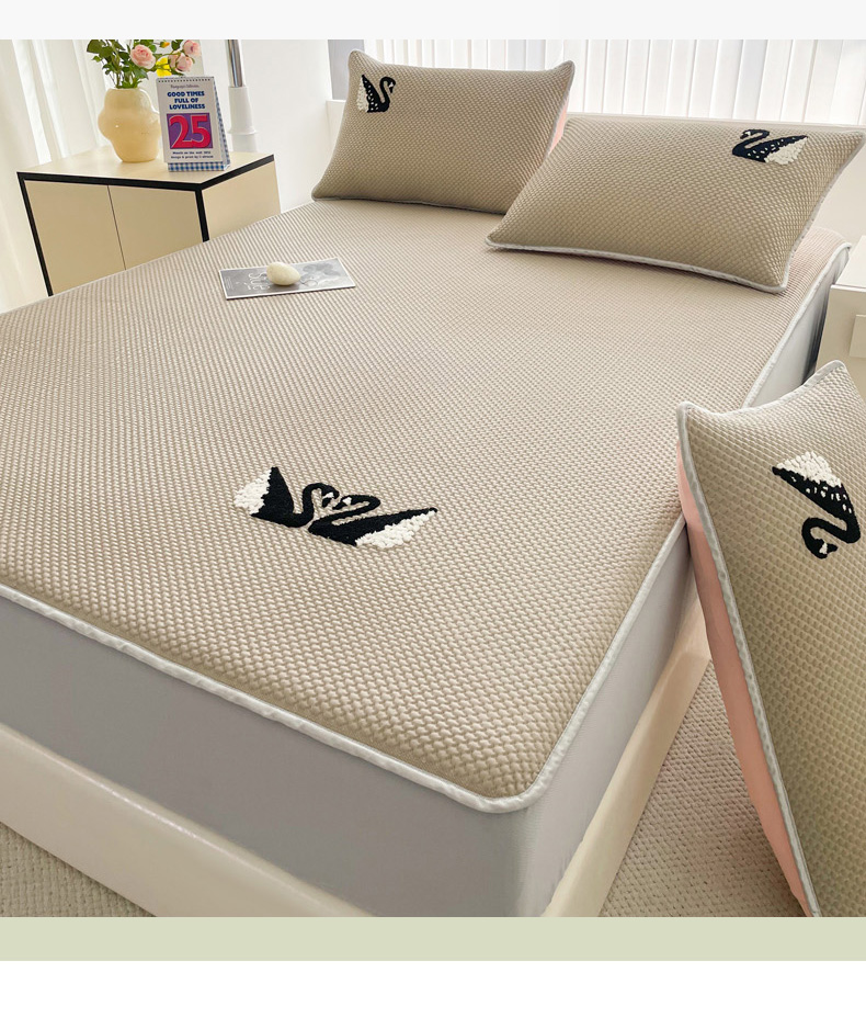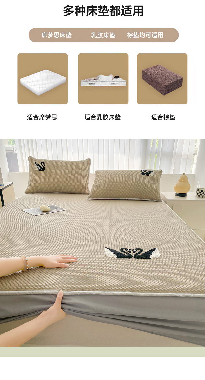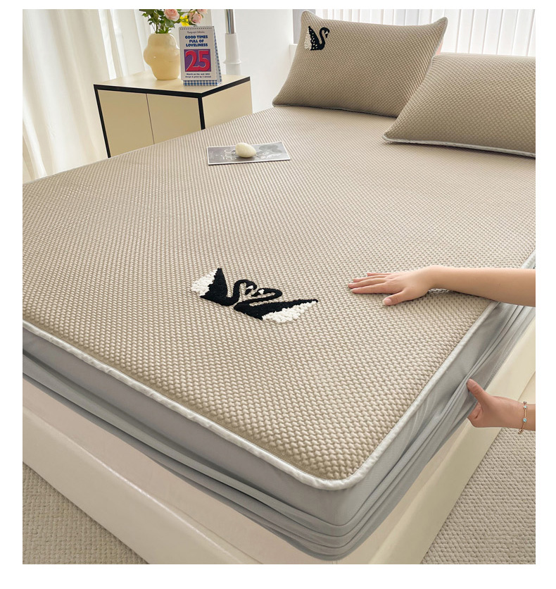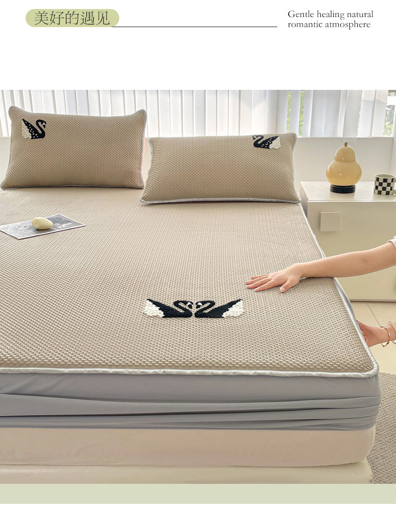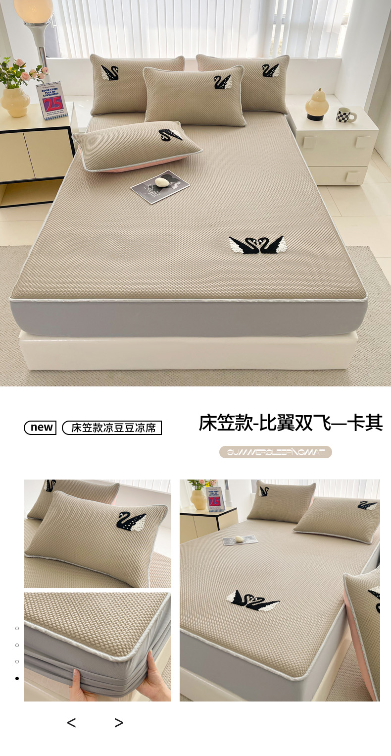商品名称:恋佳居2025新款A类乙伦PE凉豆豆毛巾绣床笠冰丝席(床笠款) 比翼双飞—卡其