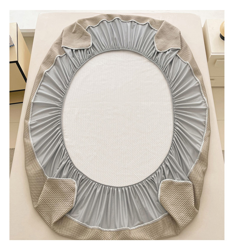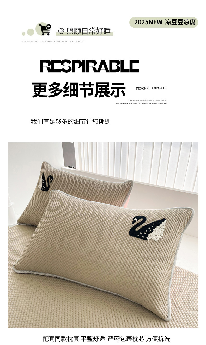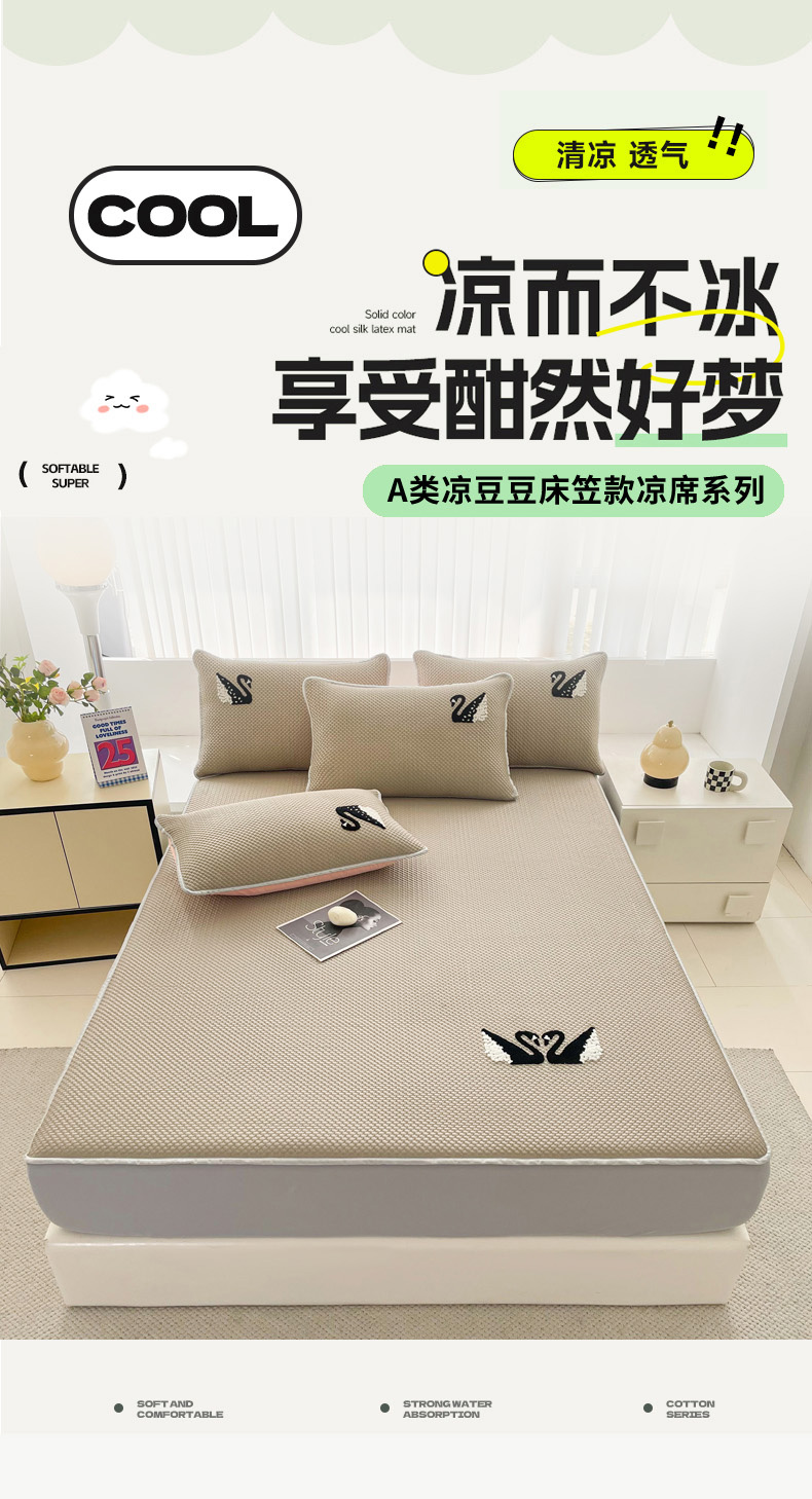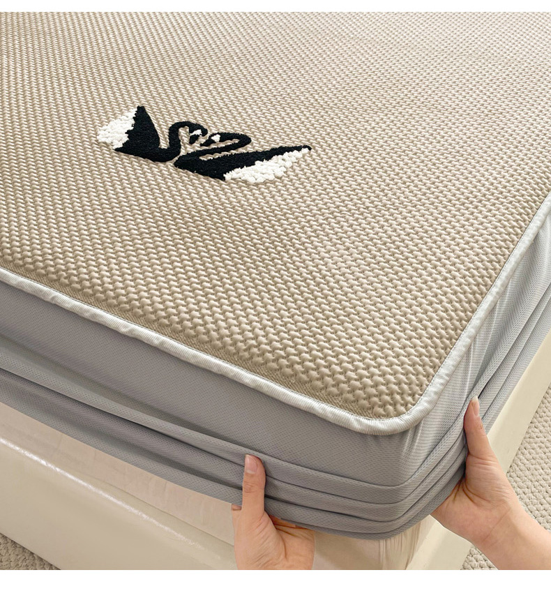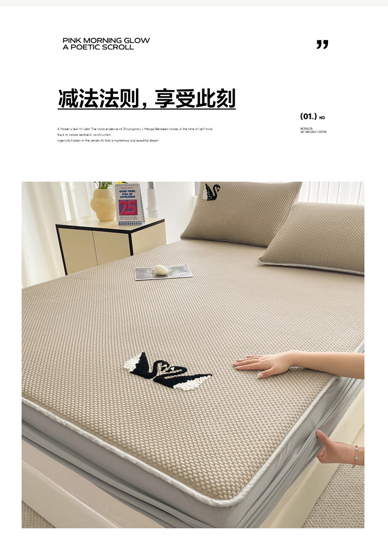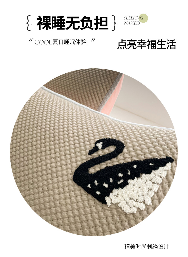 商品名称:恋佳居2025新款A类乙伦PE凉豆豆毛巾绣床笠冰丝席(床笠款) 比翼双飞—卡其