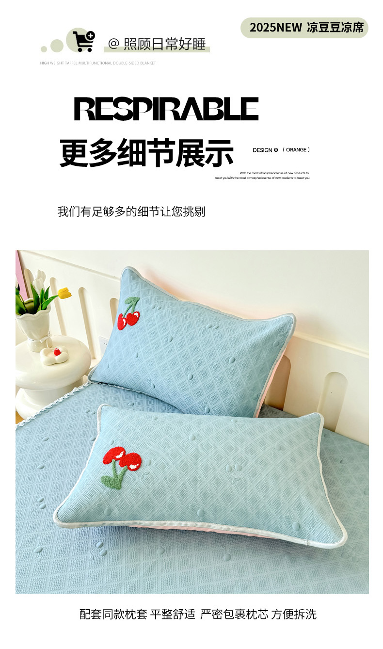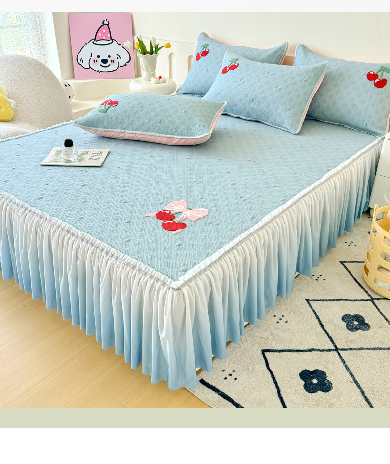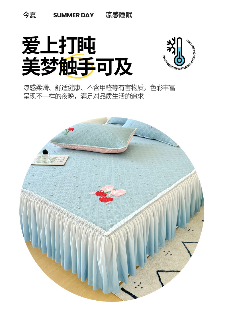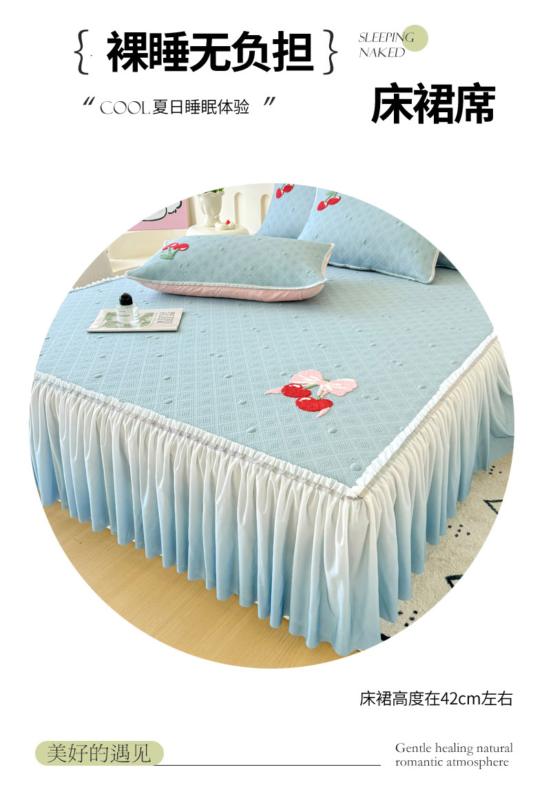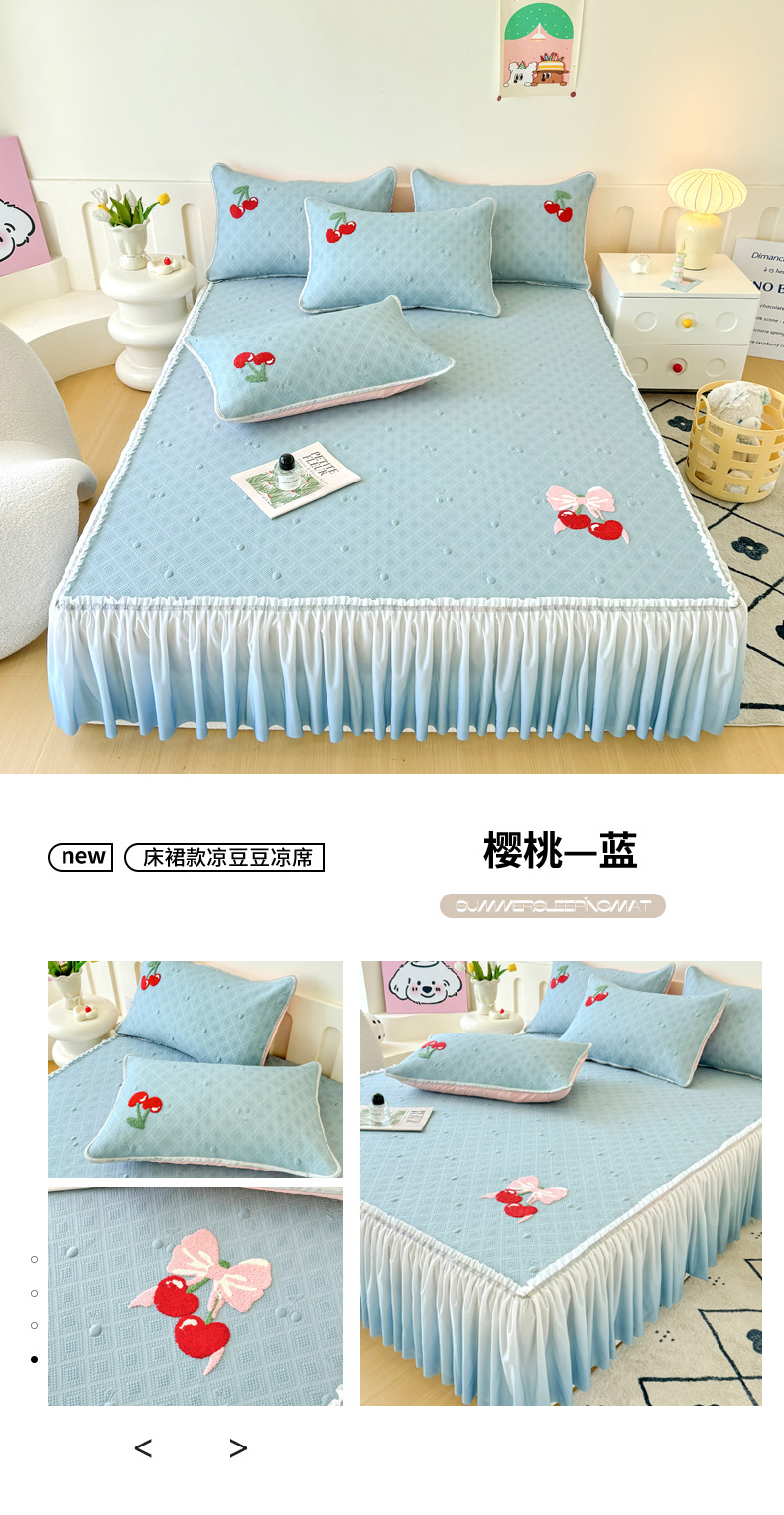 恋佳居2025新款A类乙伦PE凉豆豆毛巾绣仙女风冰丝席 樱桃—蓝