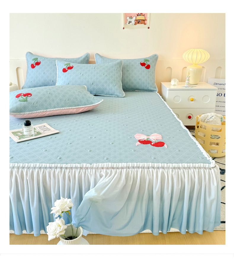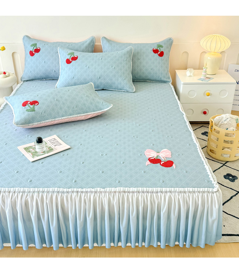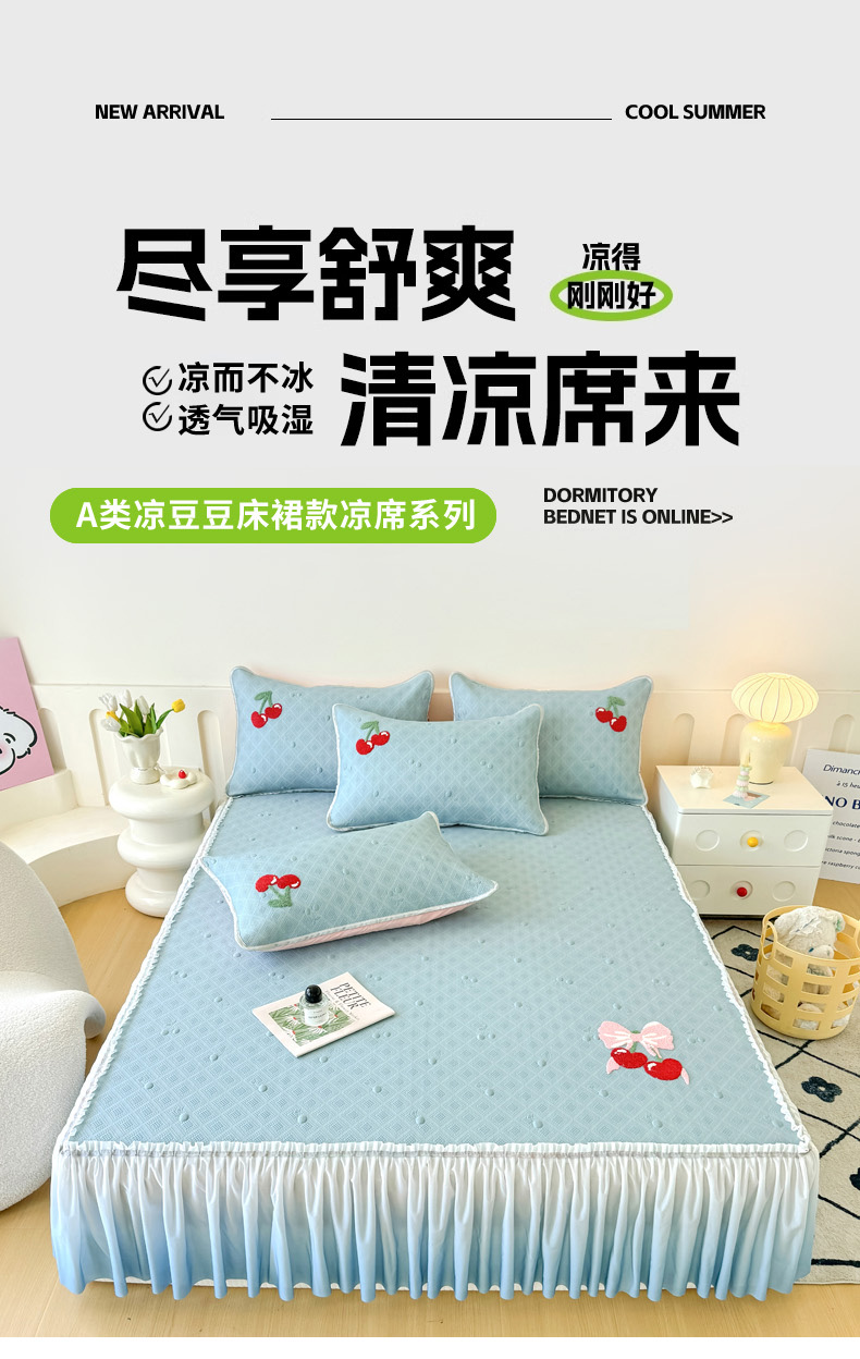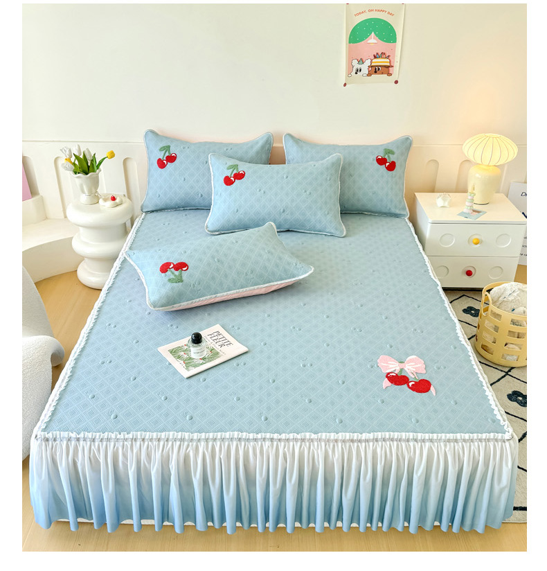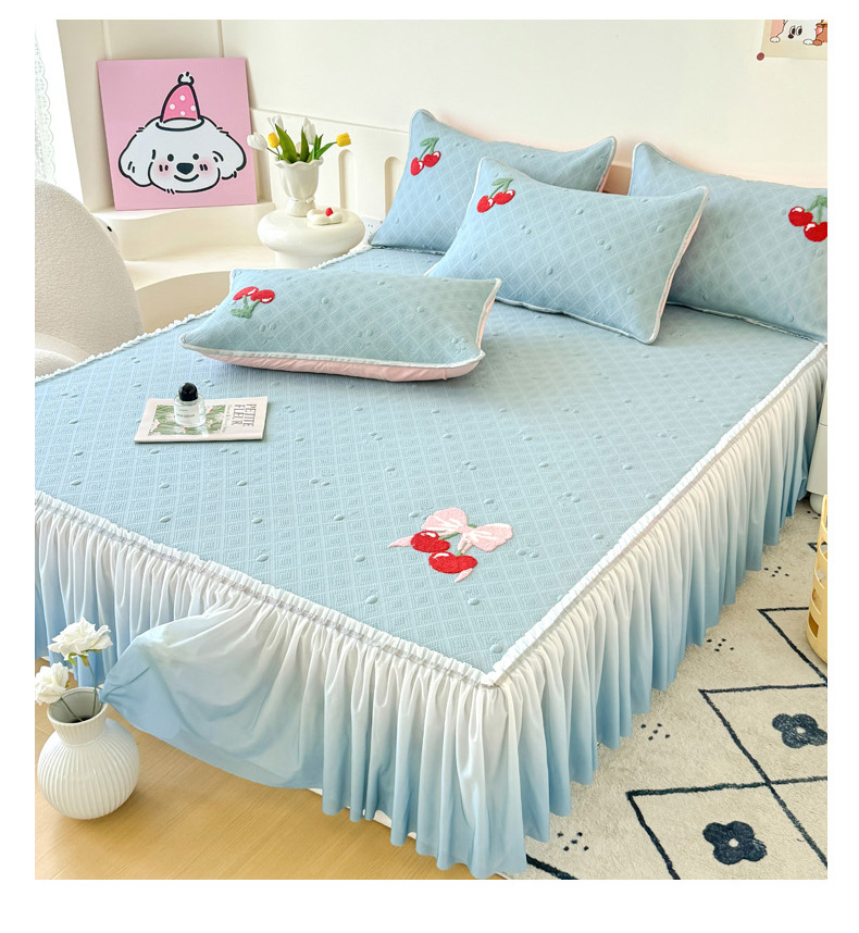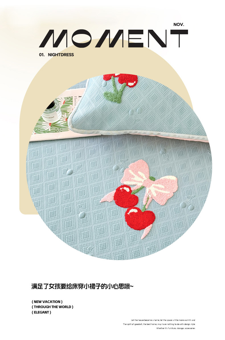 恋佳居2025新款A类乙伦PE凉豆豆毛巾绣仙女风冰丝席 樱桃—蓝