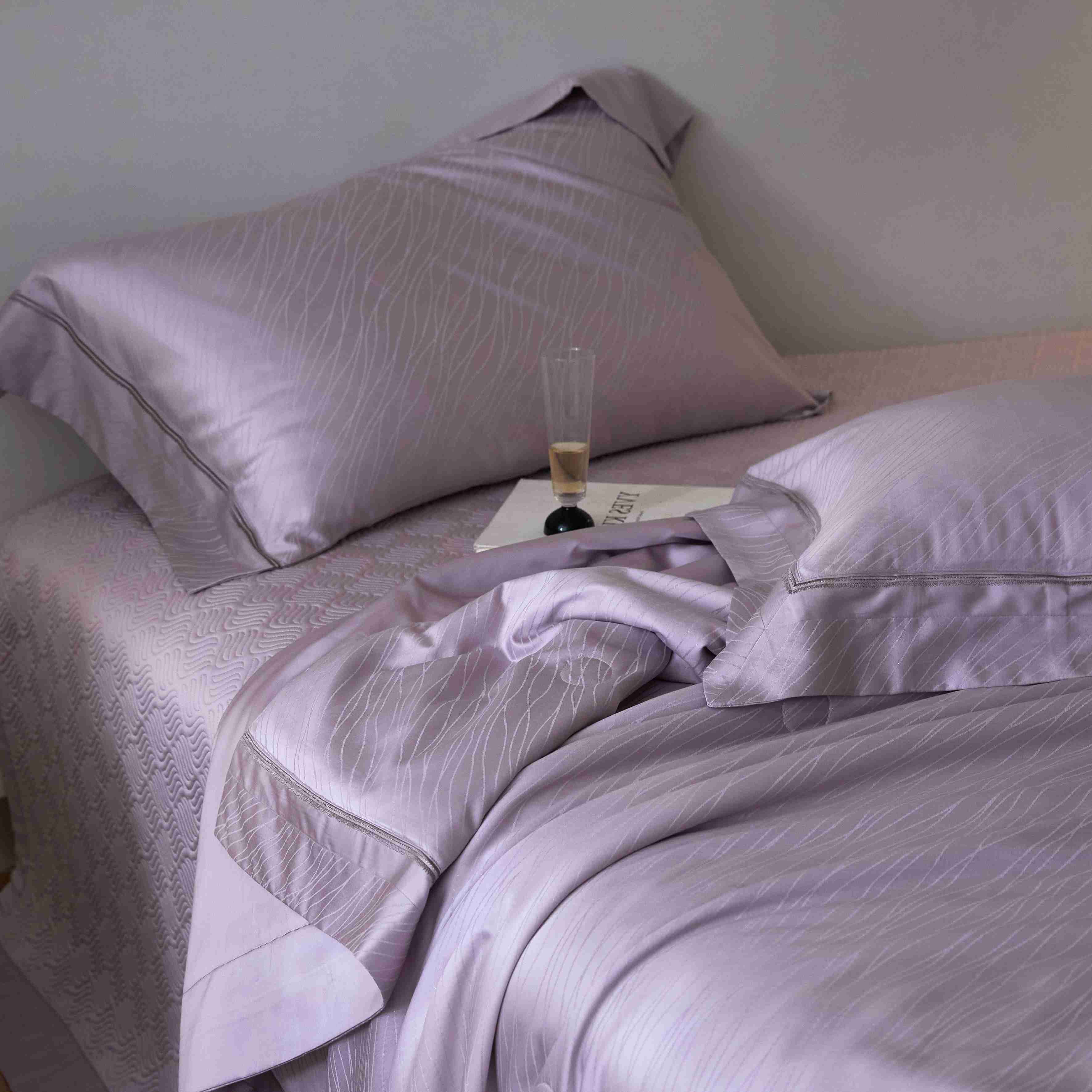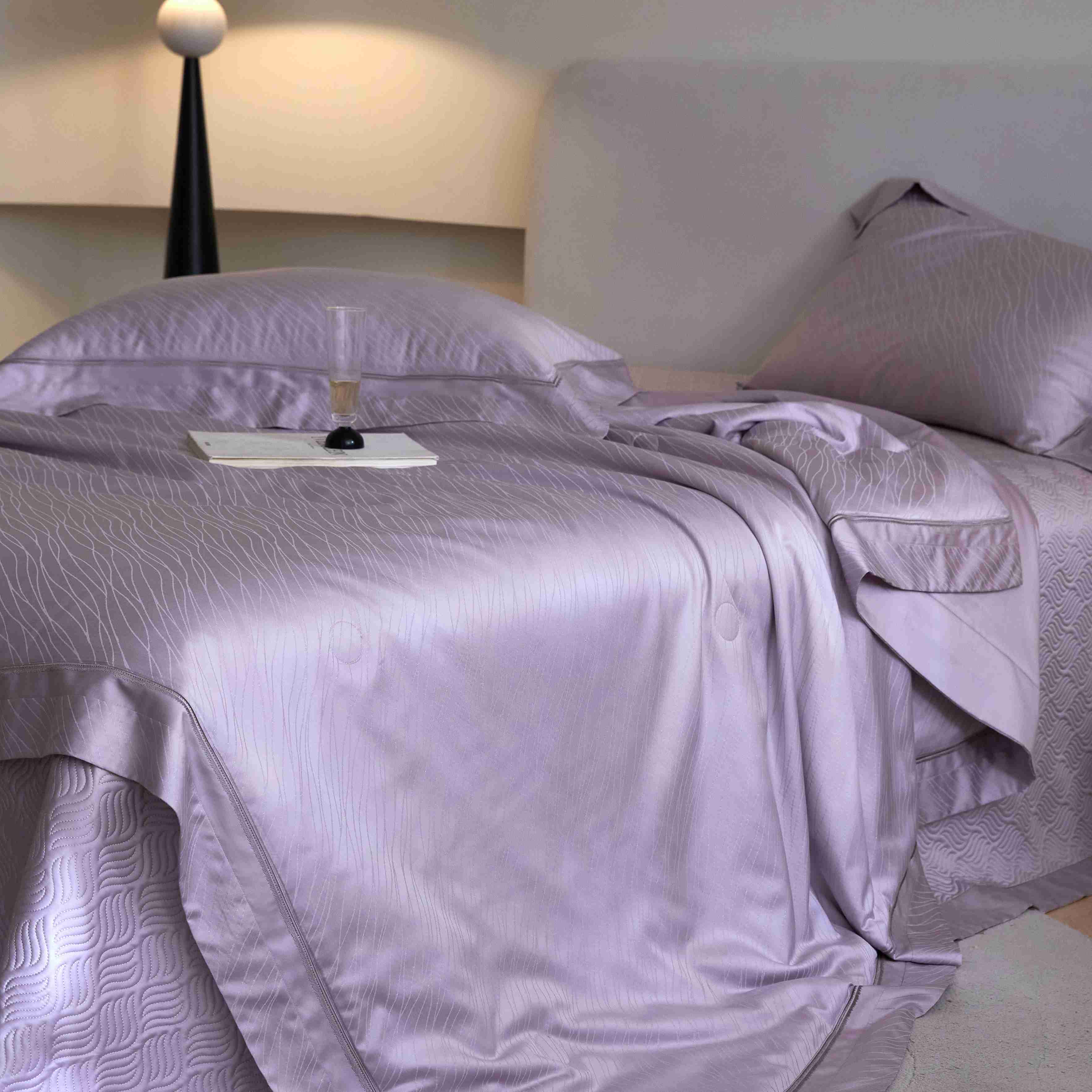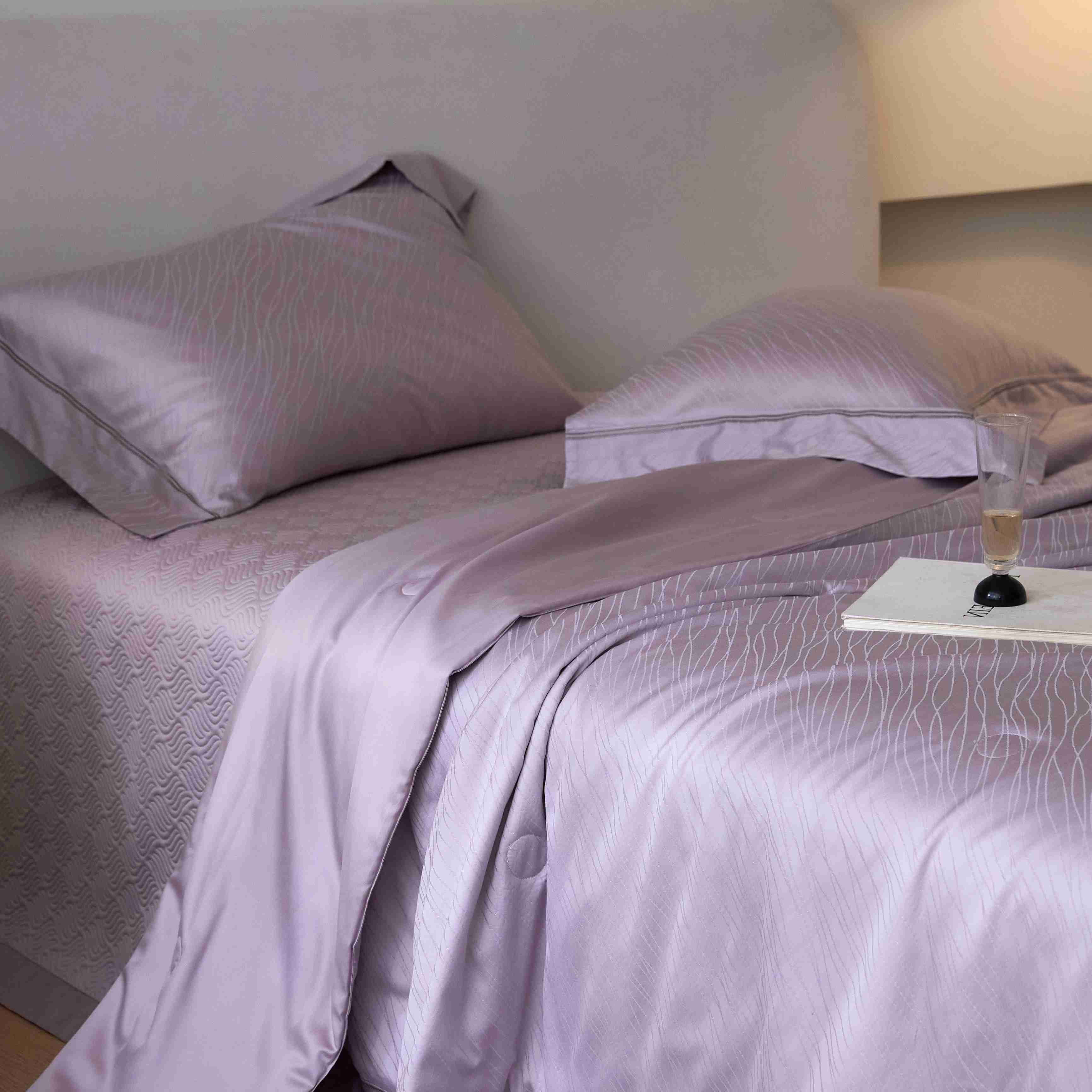 总榻尚家居 2023新款格瑞斯系列100贡缎长绒棉四件套工艺款四件套,格瑞斯紫,格瑞斯白,格瑞斯灰,格瑞斯蓝
