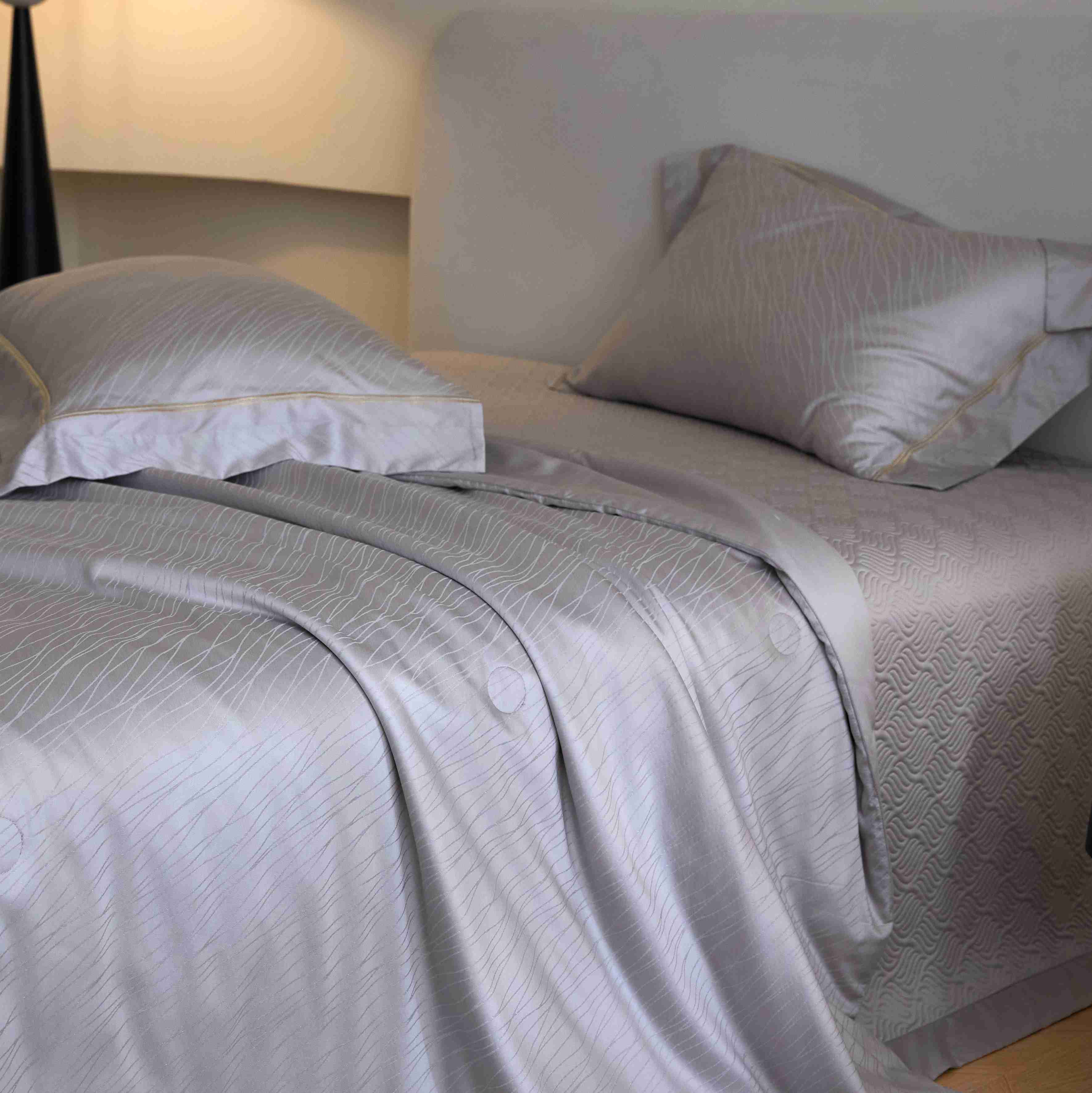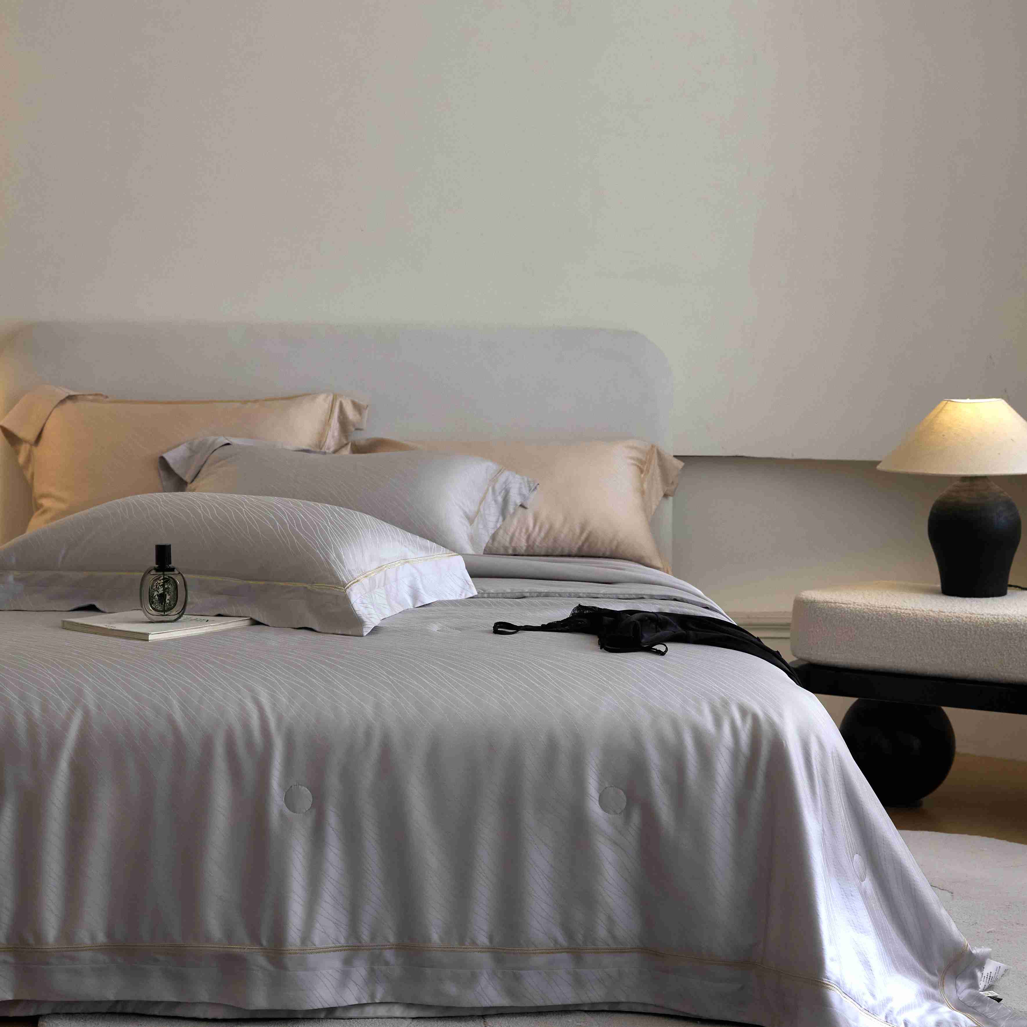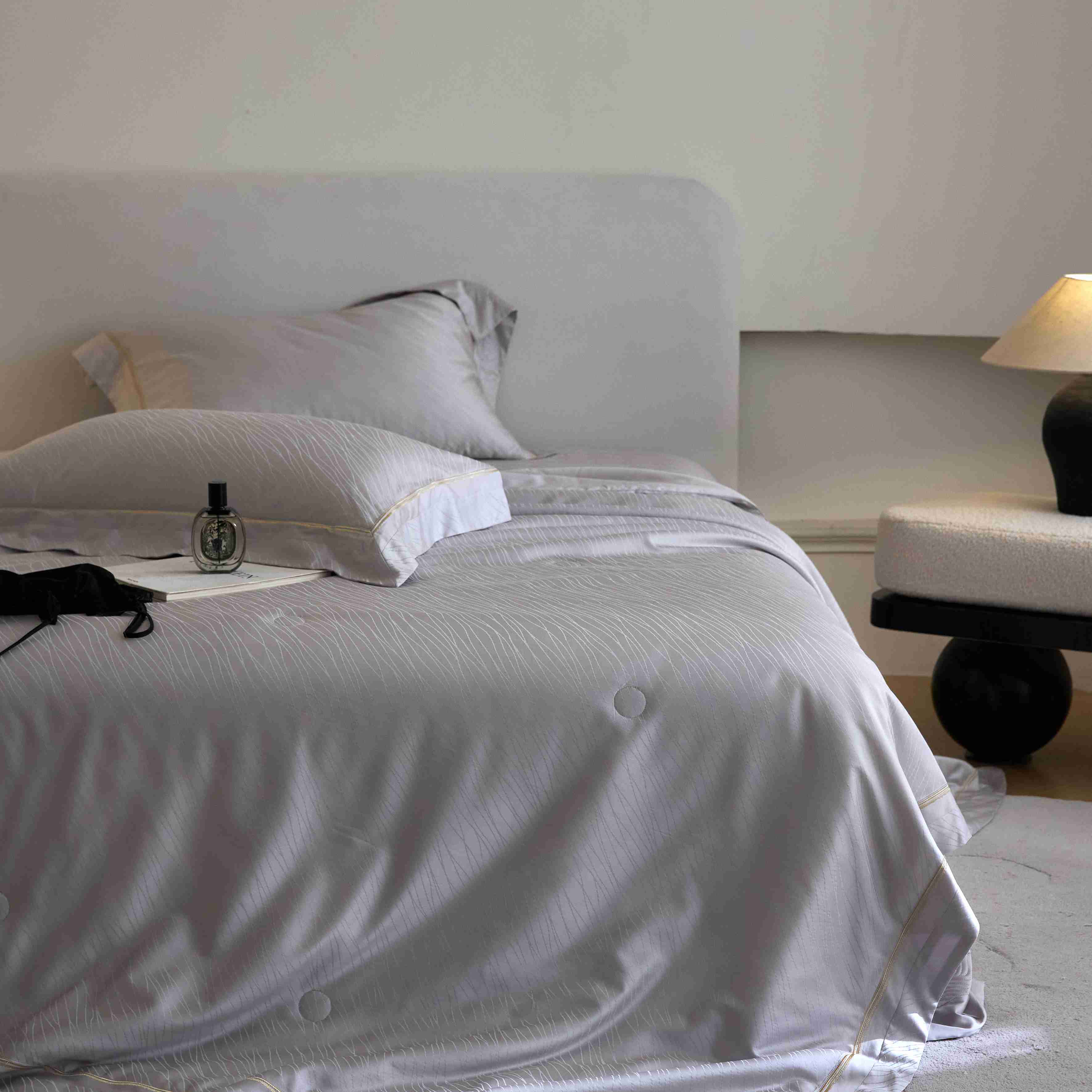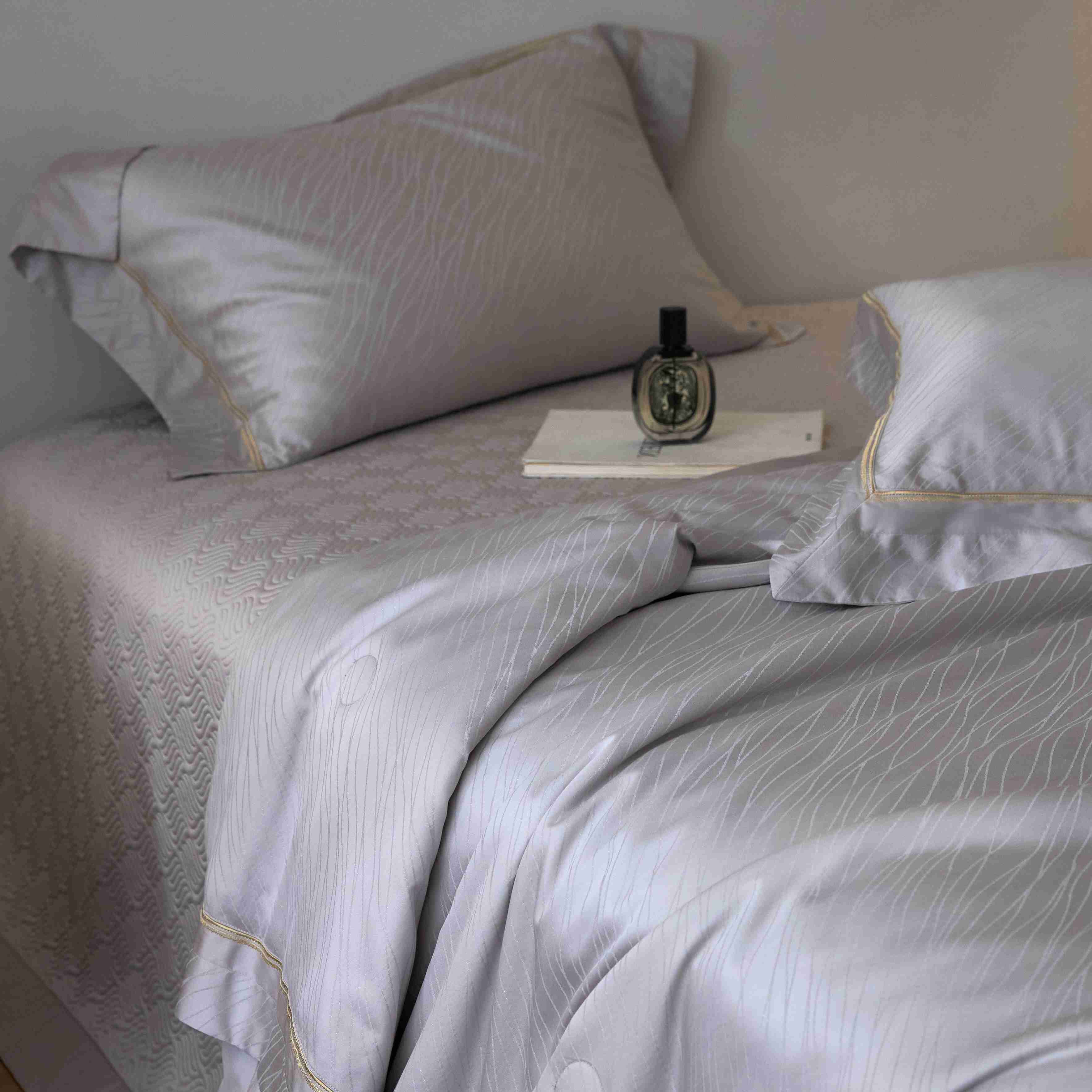 总榻尚家居 2023新款格瑞斯系列100贡缎长绒棉四件套工艺款四件套,格瑞斯紫,格瑞斯白,格瑞斯灰,格瑞斯蓝