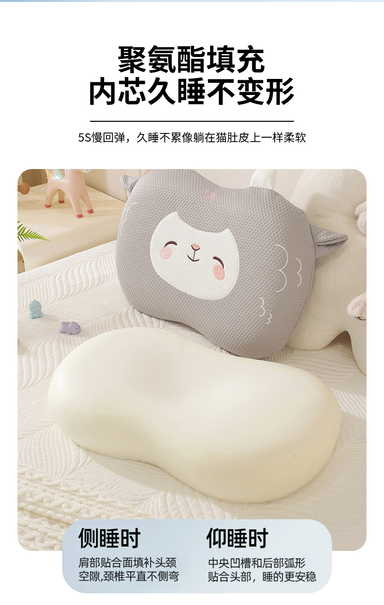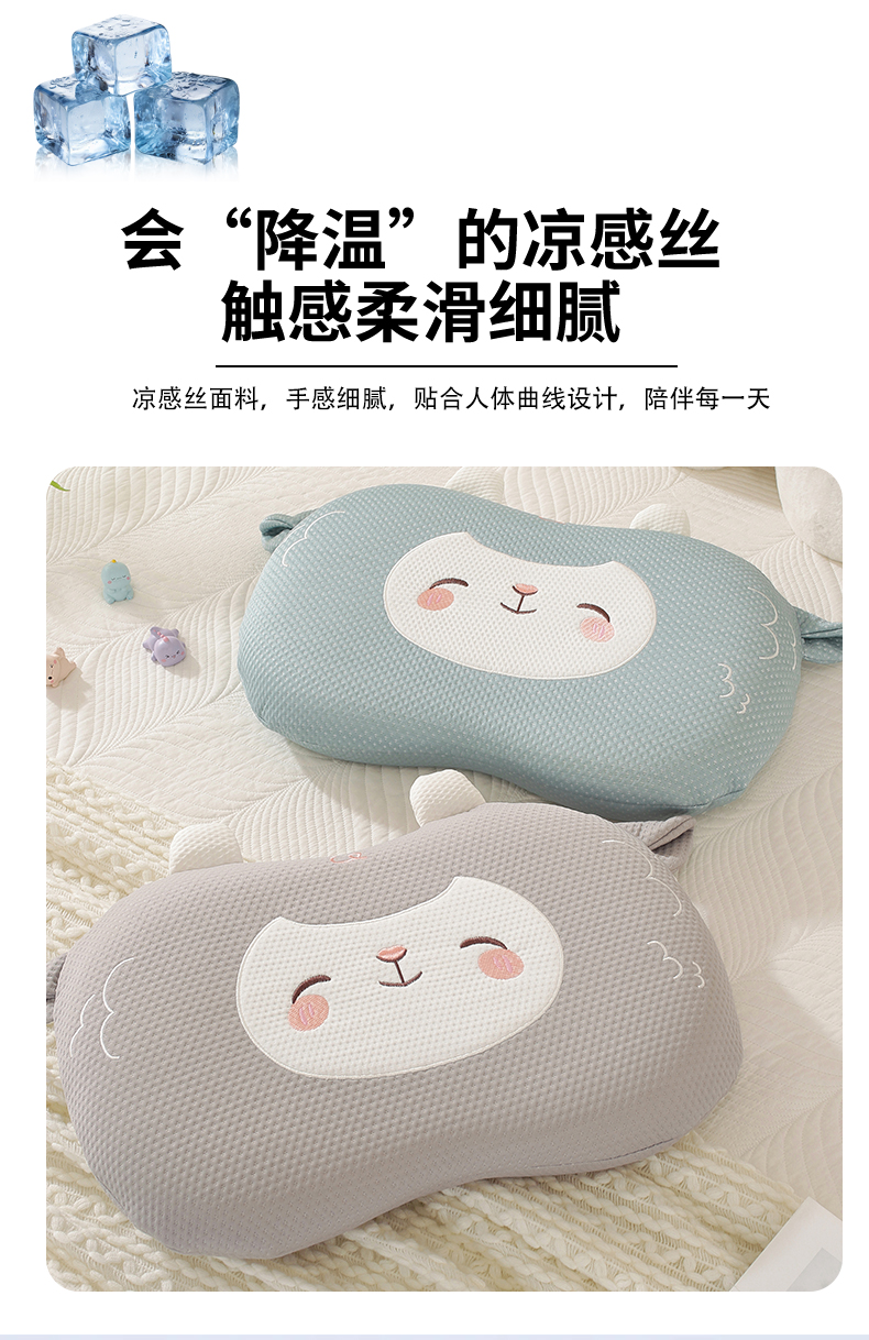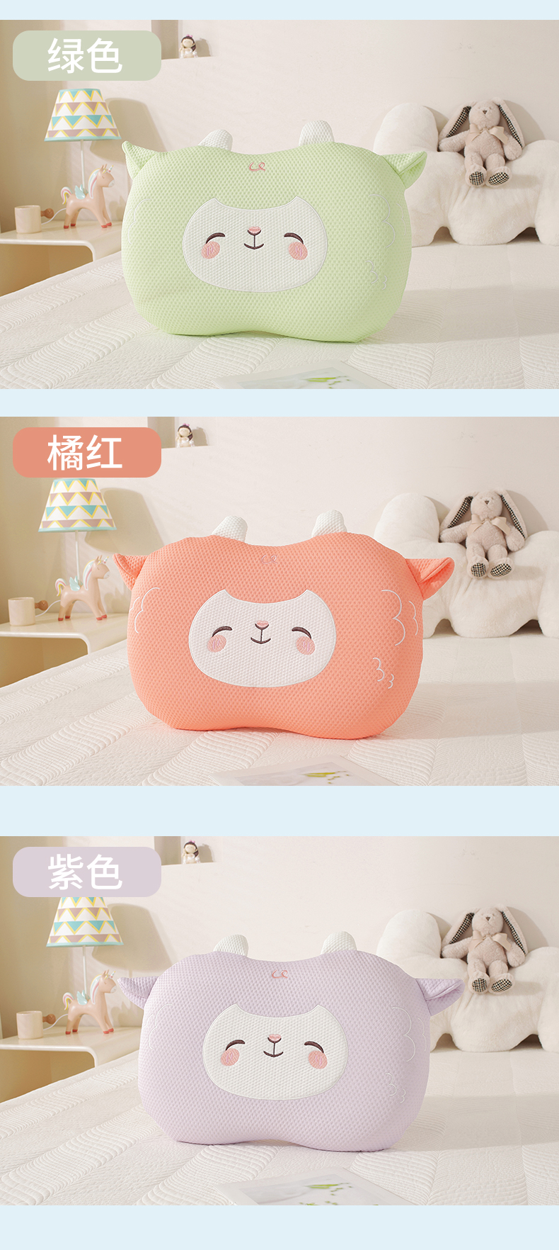 商品名称:蔻眠 可爱小羊-凉感丝凉豆豆猫肚记忆枕儿童枕芯学生护颈枕头 可爱小羊-橘红