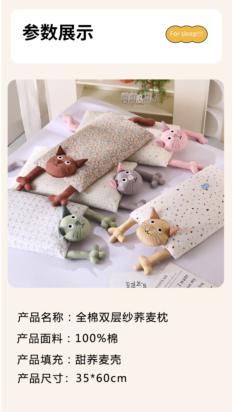 商品名称:(总)蔻眠 哇噻猫-全棉双层纱甜荞麦枕芯卡通儿童学生成人护颈枕