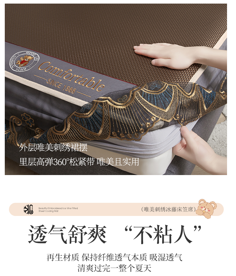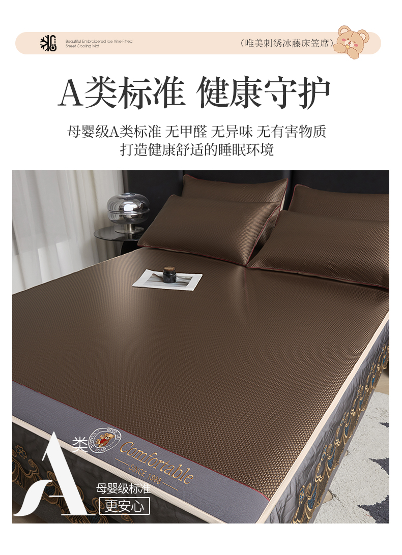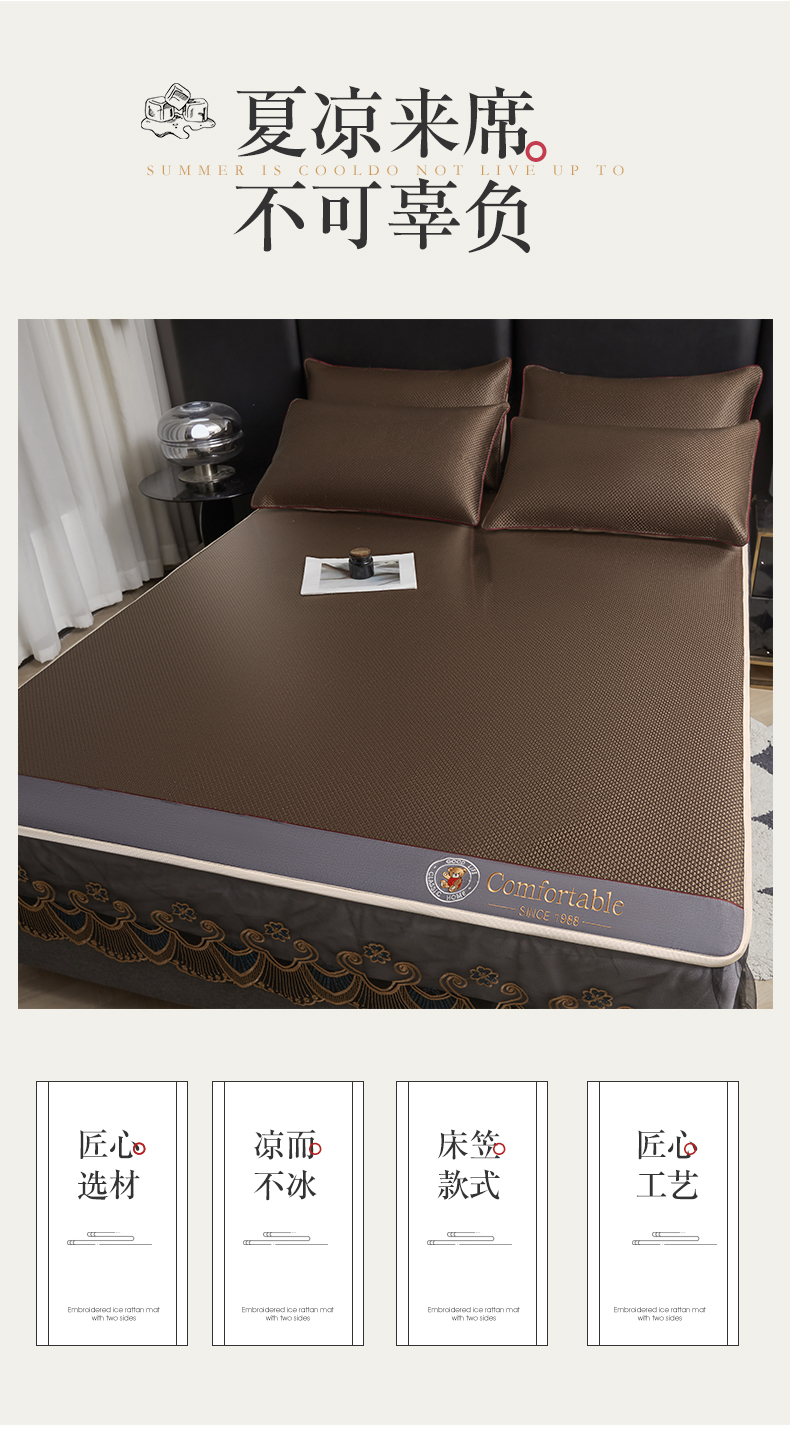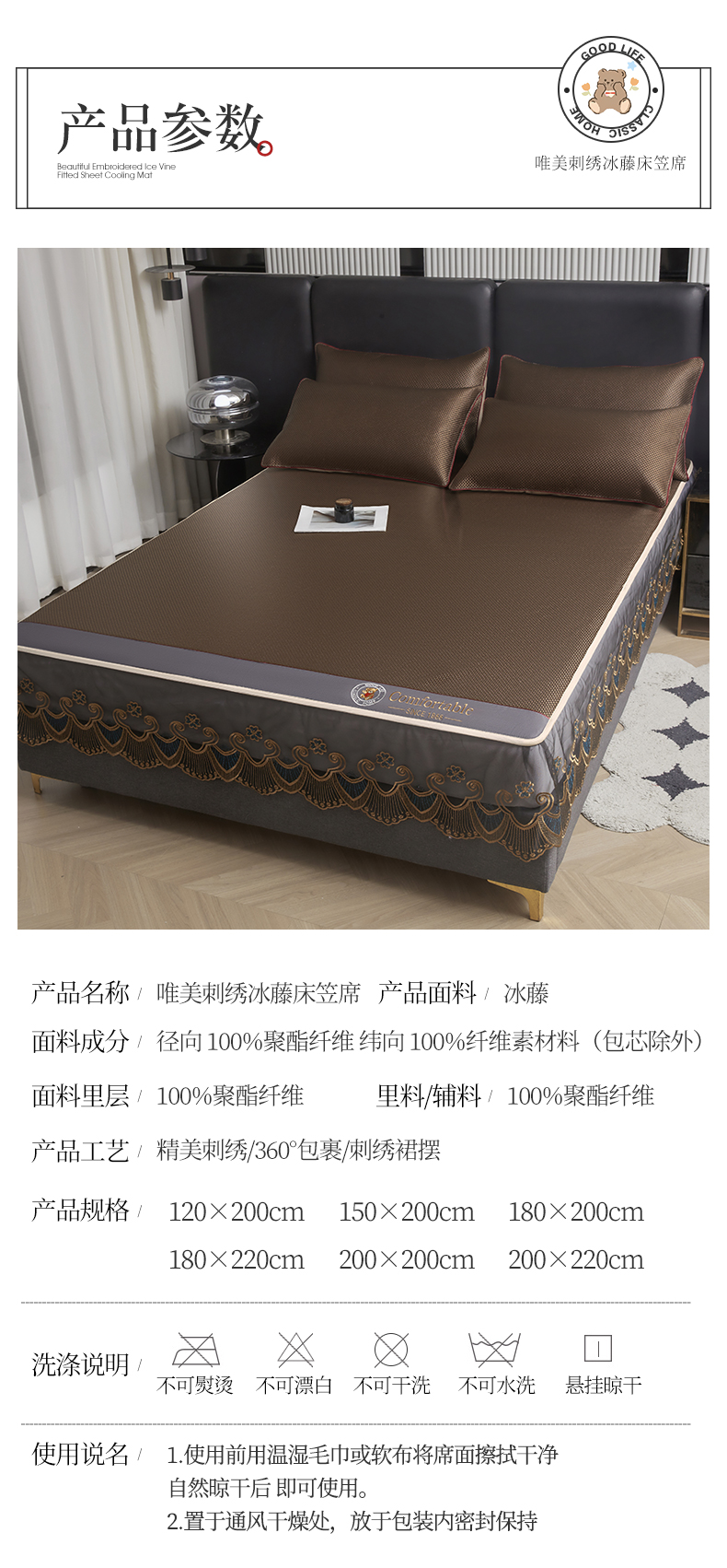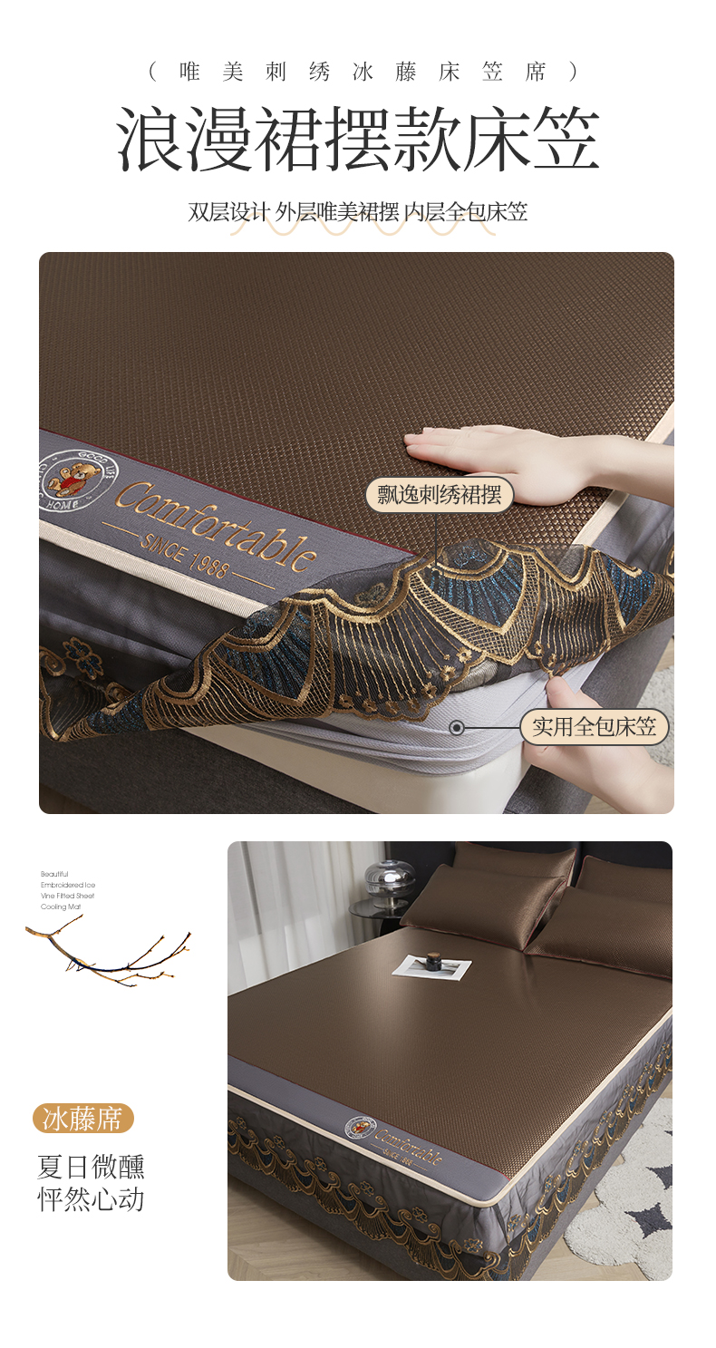 商品名称:情恒家纺 2025新款冰藤席床笠款三件套 皇朝 深棕