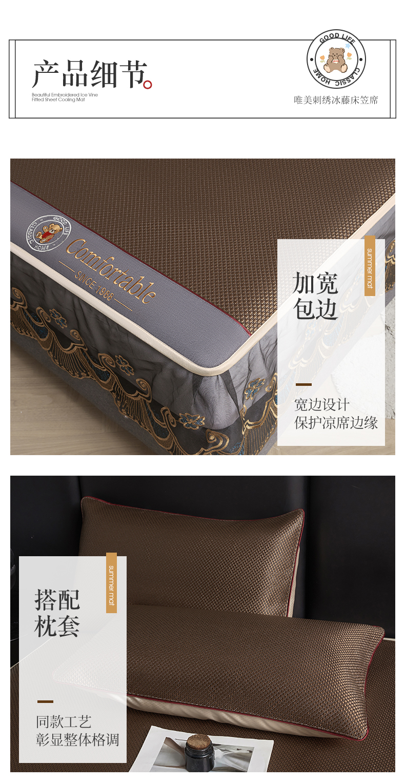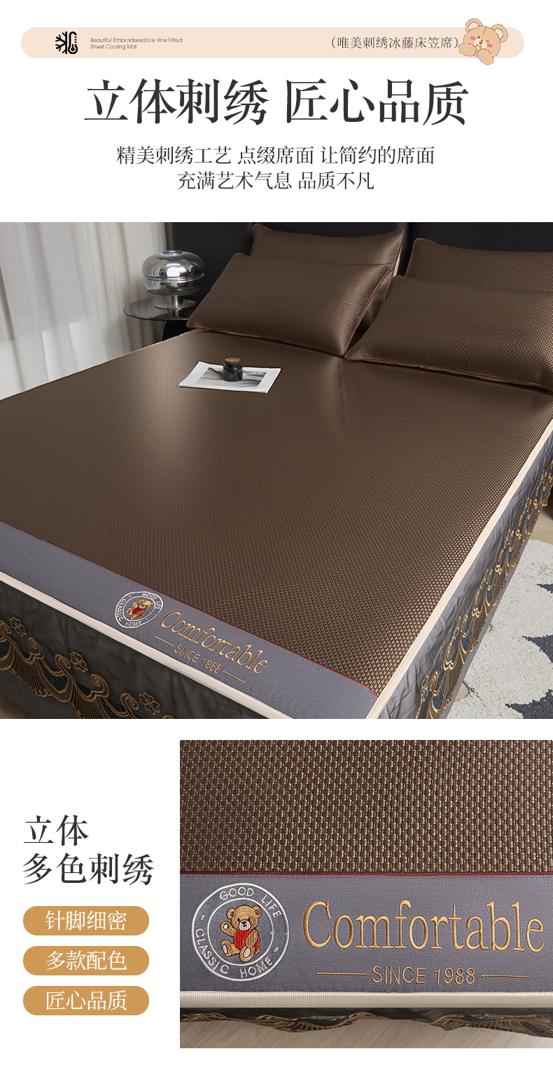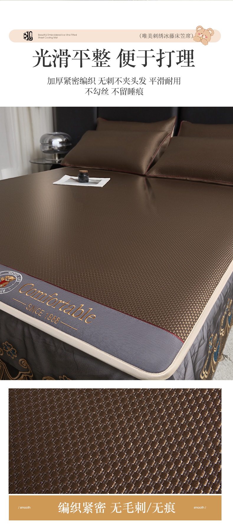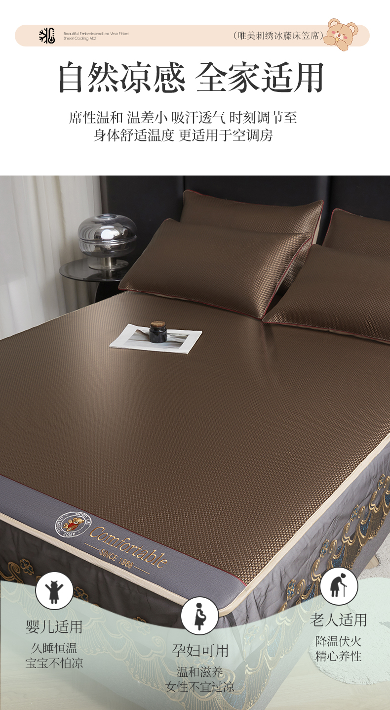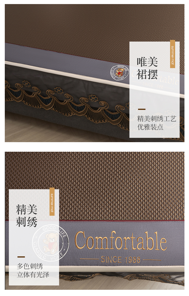 商品名称:情恒家纺 2025新款冰藤席床笠款三件套 皇朝 深棕