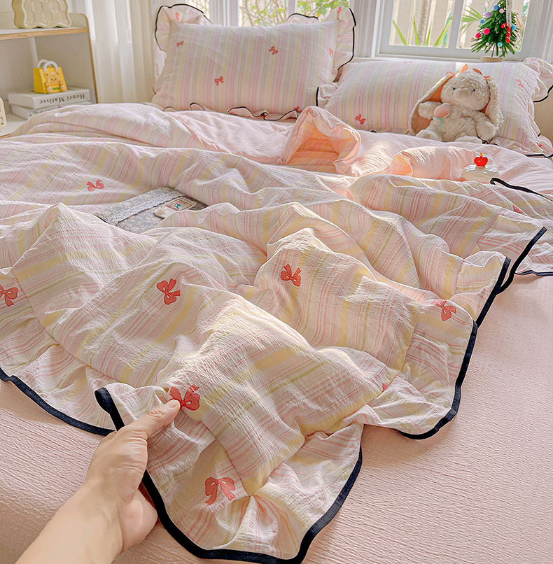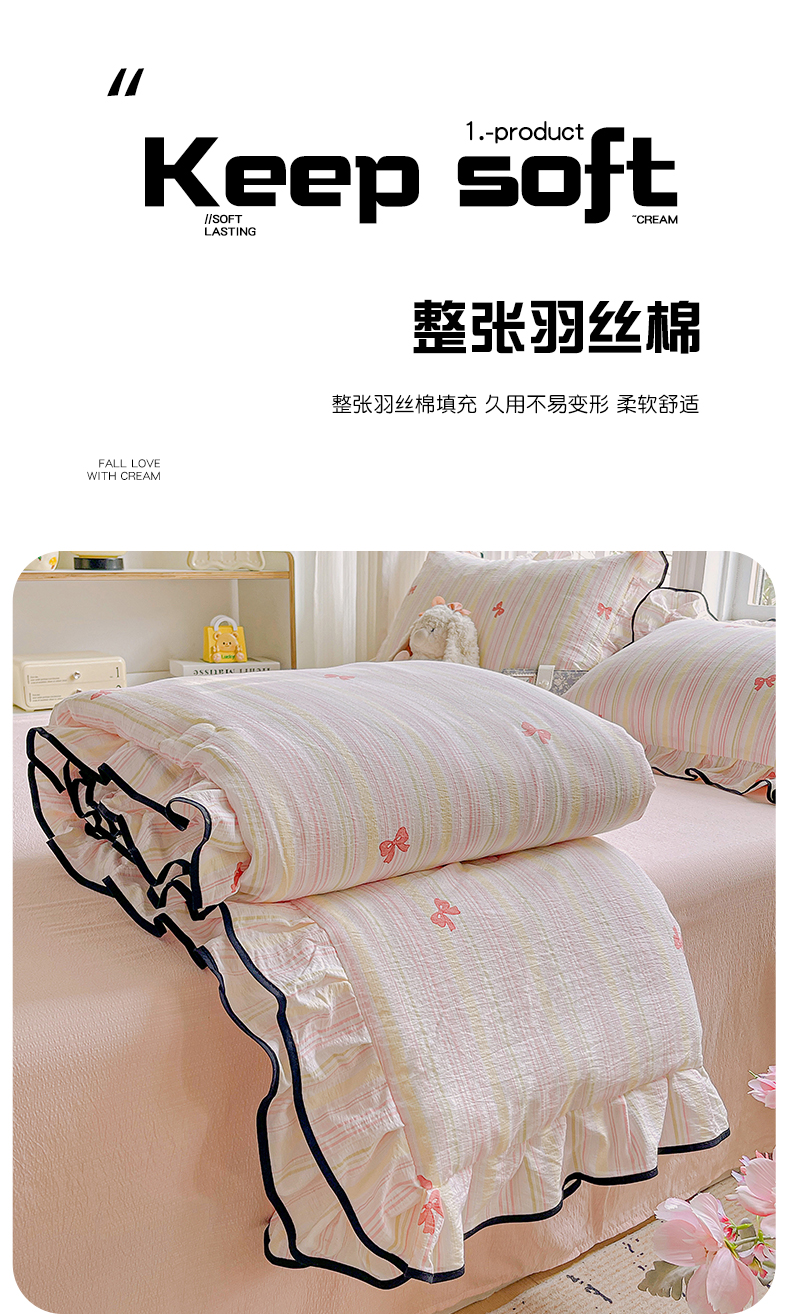 (总)暖芯优选 2025(新款皱皱双层纱荷叶大花边夏被空调被夏凉被三件套