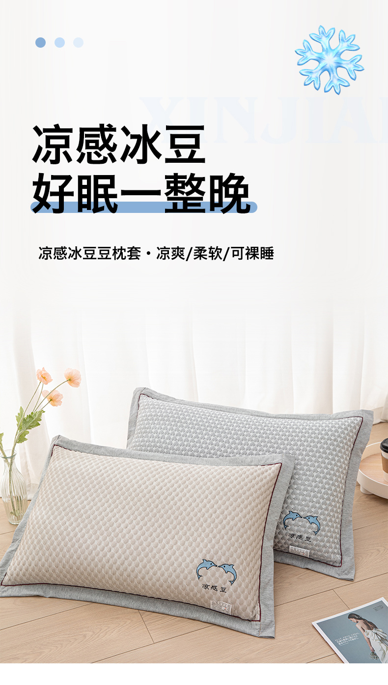 • 91家纺网 家纺一手货源 找家纺 织布人 2025新款夏季冰丝凉感冰豆豆枕套单品枕套枕套单件 海豚-驼色
